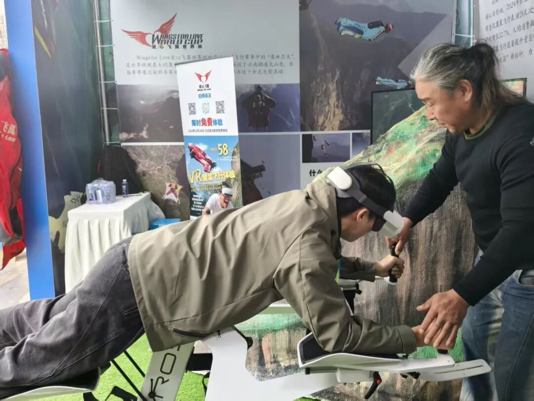“空中”,戴上VR眼镜,躺进模拟设备,昭通大山包峡谷的壮阔瞬间铺展眼前,VR翼装飞行带你开启一场“云端冒险”。