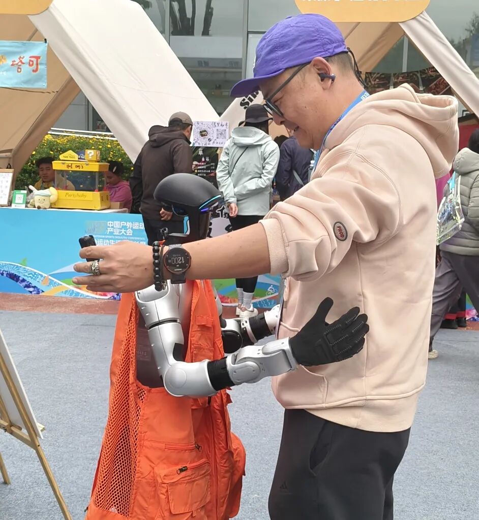 当科技与运动碰撞出奇妙火花,亲子间的温馨互动与成长探索也能在这里找到专属空间。在这里可以与机器人互动,解锁户外科技新玩法,不仅能看机器人跳活力十足的舞蹈,和它握手、拥抱,还能开启趣味问答,在互动中感受科技赋能运动的乐趣。