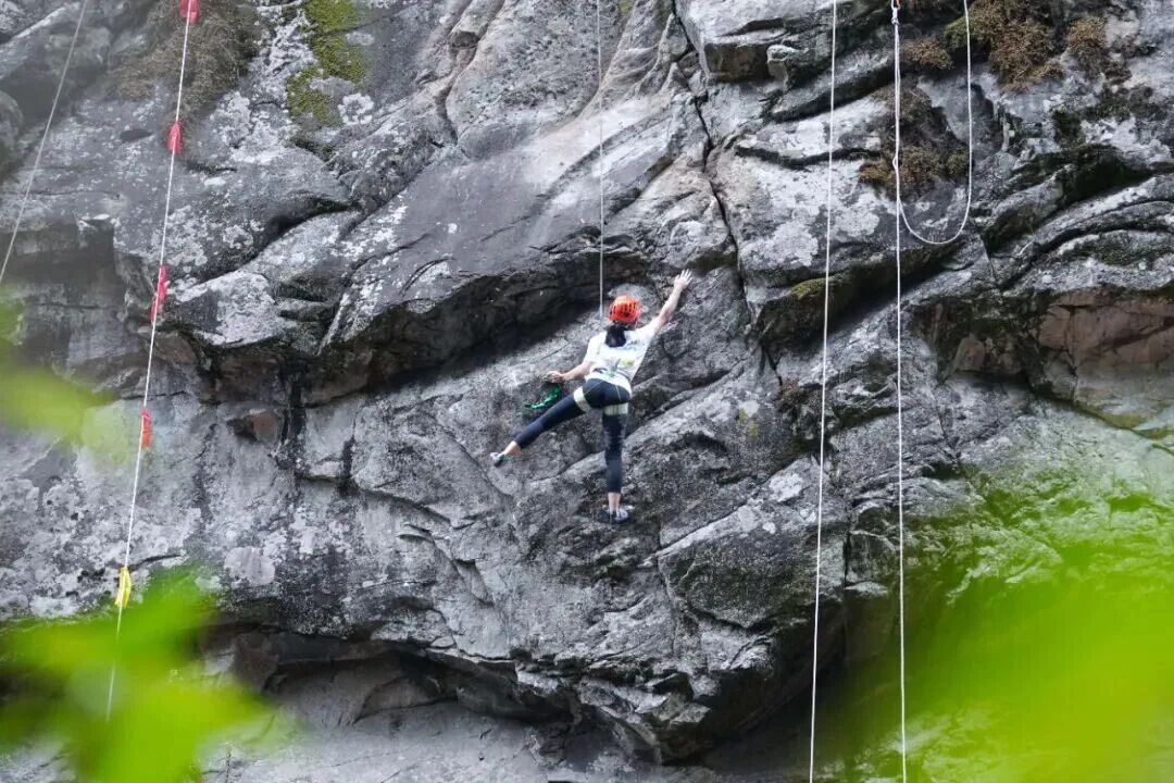 漾濞的户外运动王牌,首推石门关景区。由清凉山与翠屏山对峙而形成的深邃峡谷,落差超过550米,绝非寻常风景。这里的崖壁不是光滑一体,而是布满了天然的凹凸缝隙与丰富的角度变化,被攀岩界誉为不可多得的“天然岩壁乐园”。正因如此,专业级的中国攀岩自然岩壁系列赛已三次在此落户,高手们在绝壁上翩然起“舞”,诠释着力量与技巧。