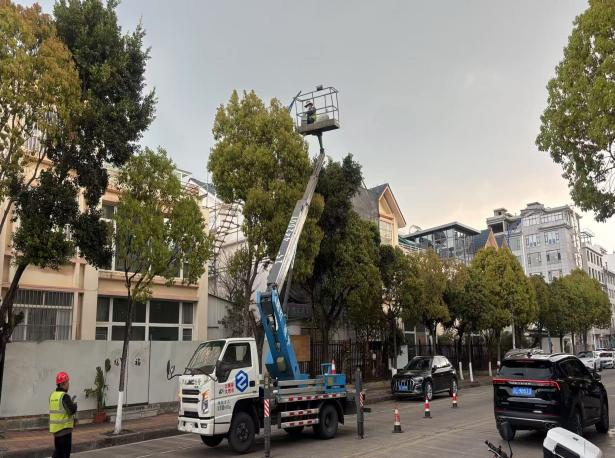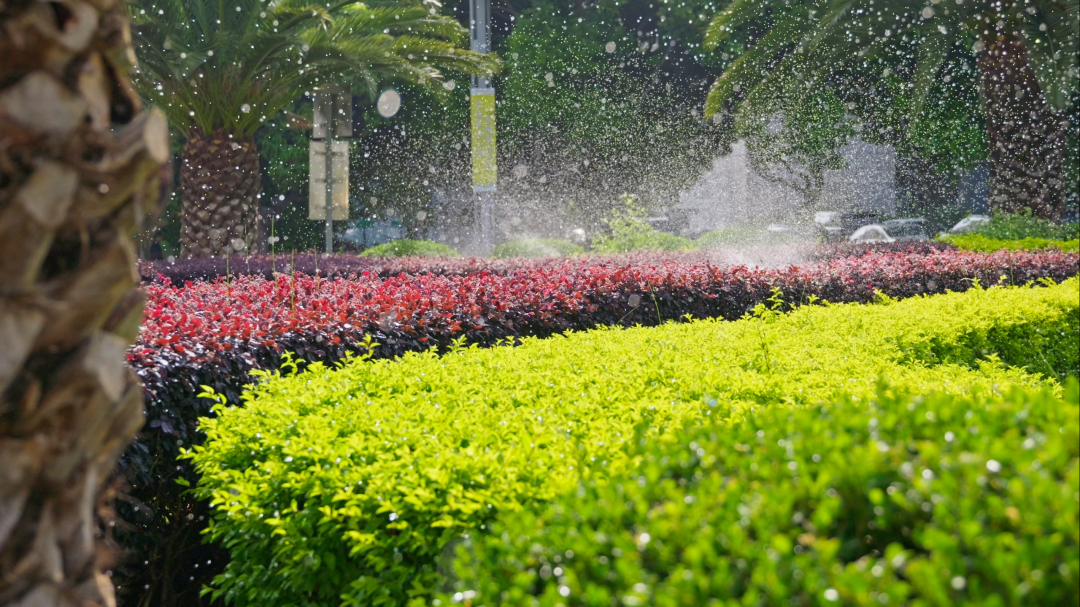 “加”——增绿补植:对绿化稀疏区域进行土壤翻新及苗木更换,自绿美行动开展以来累计补栽乔灌木2800余棵、草坪地被7.3万平方米,城区绿化量得到显著提升。“减”——精修细剪:对乔灌木、绿篱、草坪等绿植进行精细化修剪,确保树形美观、绿篱线条流畅、草地平整。“乘”——浇水施肥:根据季节特征和气温变化,科学安排洒水车、水管、喷带浇水频次,确保苗木水分充足,灌溉全覆盖,并适时开展绿地施肥复壮,提高苗木生长率。“除”——防治结合:预防为主,持续加大病虫防治力度,全面治理高温下的绿植病虫害。