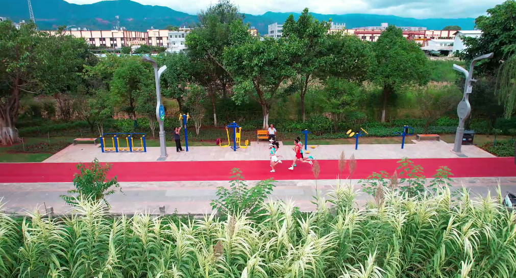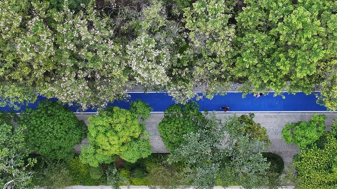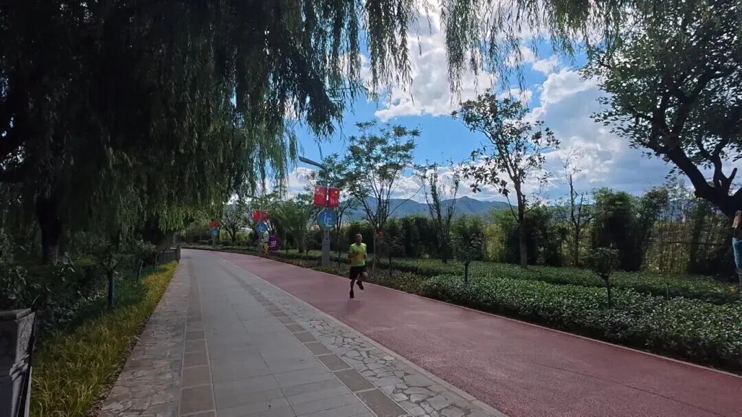 生态跑道:10公里弹性沥青步道,绿植花海相伴