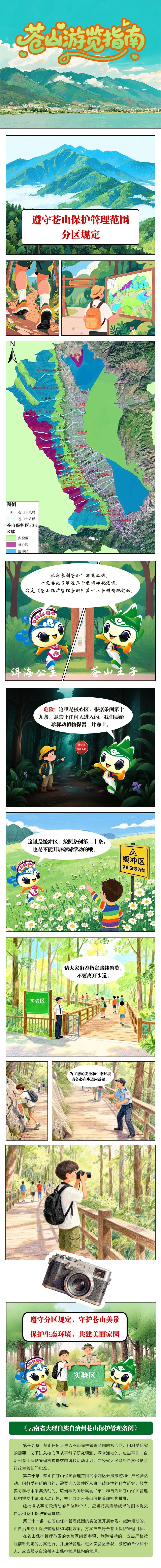 即日起,苍山洱海国家级自然保护区管理局正式推出《云南省大理白族自治州苍山保护管理条例》漫画解读版。为筑牢苍山生态安全屏障,根据《云南省大理白族自治州苍山保护管理条例》,苍山全域已严格划分为核心区、缓冲区、实验区。今天,我们将通过这组生动详尽的科普漫画,带您清晰了解各区域管理规定,敬请广大游客及市民知悉并严格遵守。