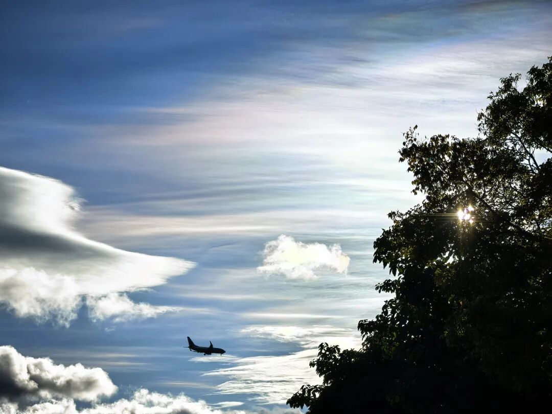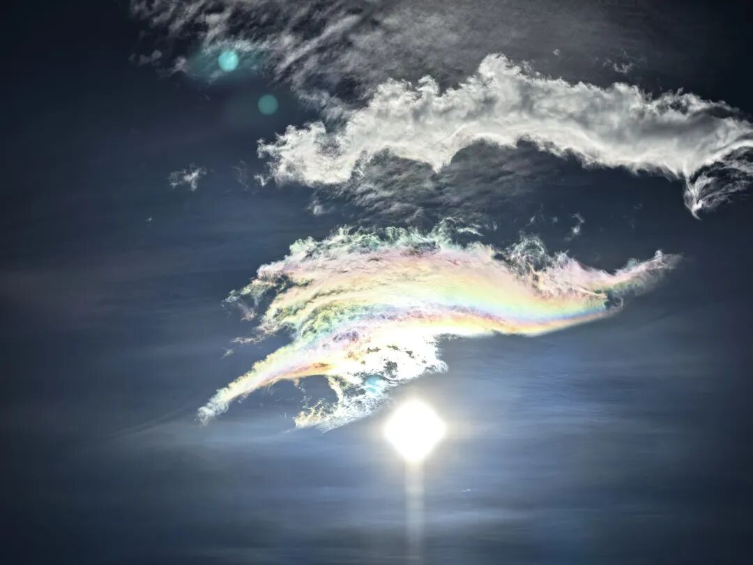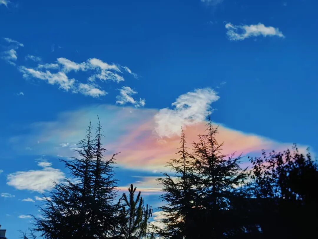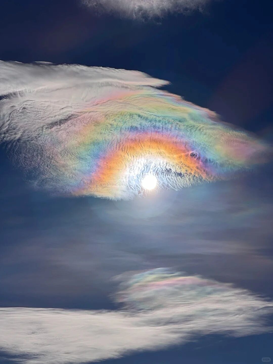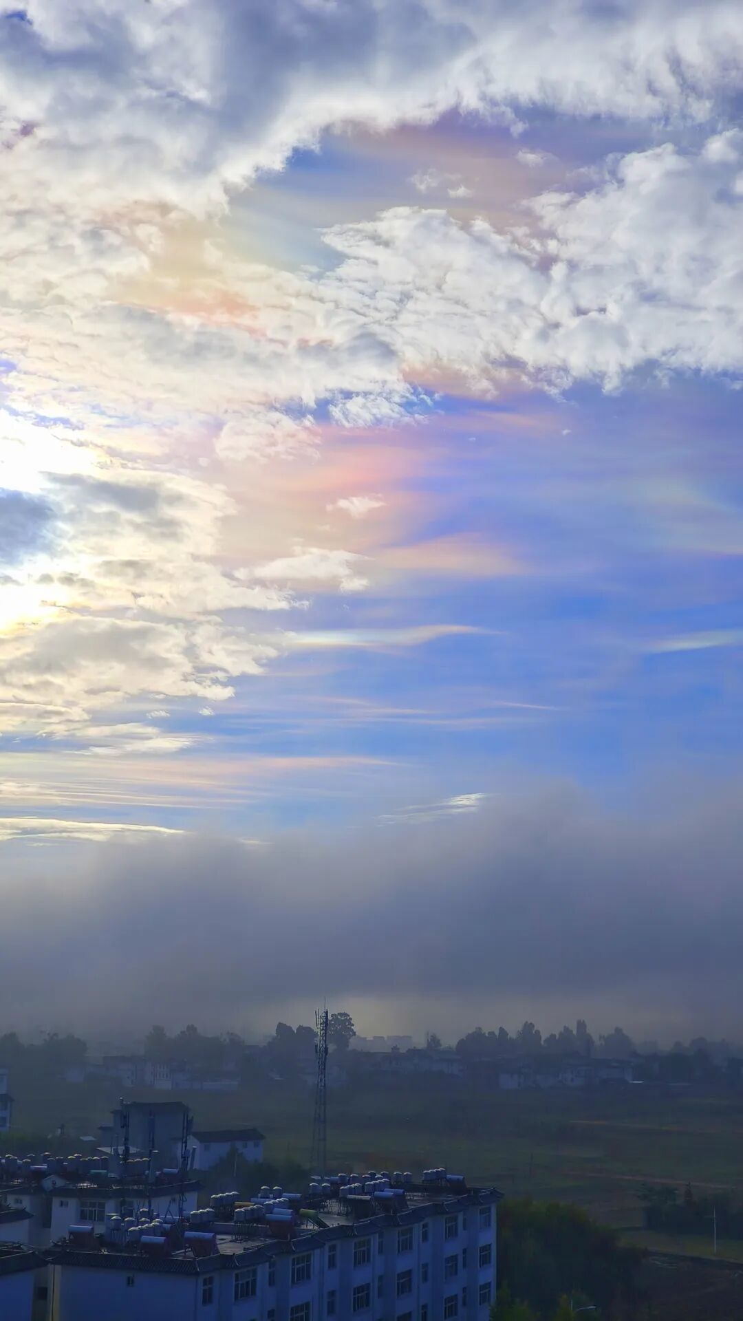 这绝美的一幕,在气象学上被称为“虹彩云”。当阳光穿透高层云中分布均匀的微小冰晶或水滴时,会发生巧妙的“衍射”作用,如同三棱镜分光,将白色阳光分解成我们所见到的斑斓光谱。这是大自然最顶级的浪漫,可遇而不可求。