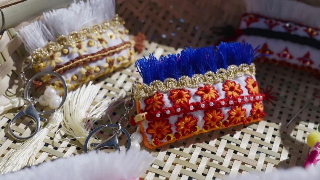 为了保证产品的品质与温度,姐妹俩坚持纯手工制作。妹妹刘燕萍负责刺绣等针线活,姐姐王丽美负责串珠、饰品搭配以及对产品进行网络宣传。