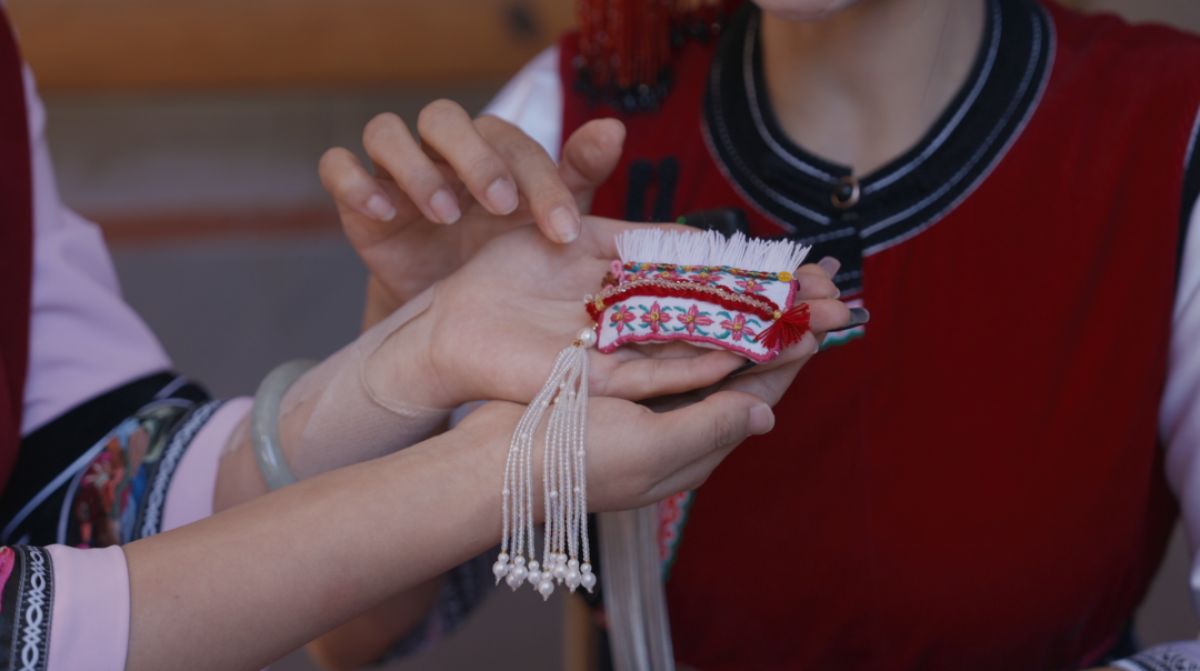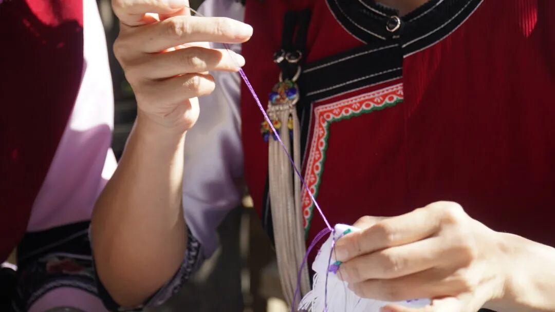 自十月底开售以来,“风花雪月”白族小包头销量一路飙升,客源来自全国各地。阳光下、小院里,王丽美姐妹俩正在赶制下一批客人的订单,艳红的白族服饰衬得她们更加利落大方,包头上的流苏随着身体不停摆动,彩色的线在手中来回穿梭,绣出的不仅是精美的纹样,更是她们五彩斑斓的生活……今年26岁的刘燕萍希望通过她们的传承创新,能让更多人知道大理的民族文化。