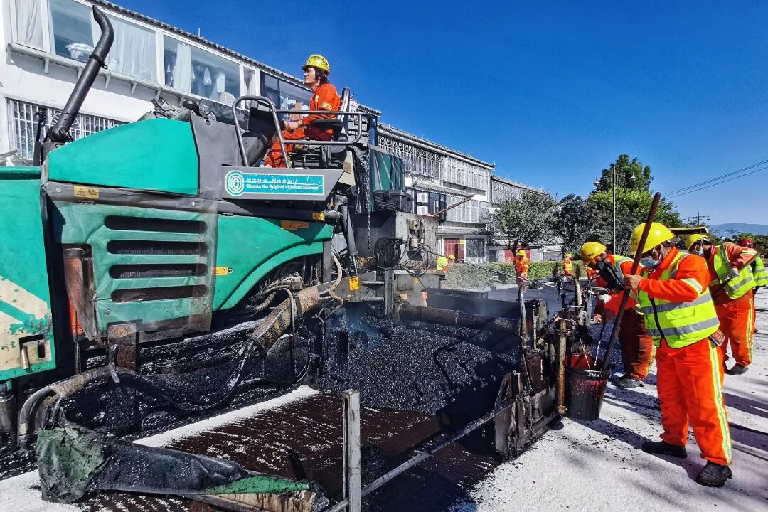 苍洱大道至学府路口段全长约1公里,主要施工内容有原有路面板修复、原有混凝土路面铣刨、沥青灌缝、1.8cm PG100型高韧超薄沥青磨耗层摊铺作业,预计11月20日可以建成通车。