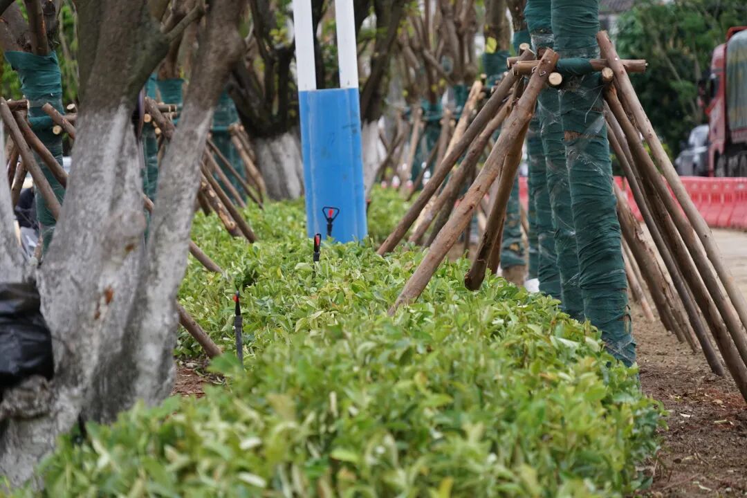 采用“乔木为骨、灌木为韵、花草为缀”的立体配置