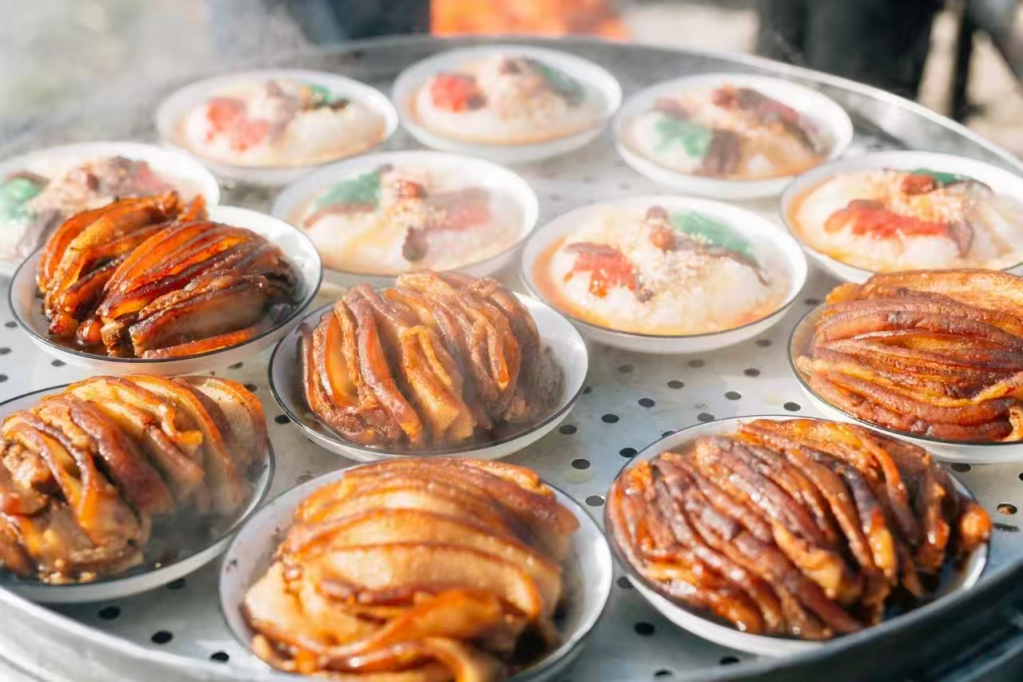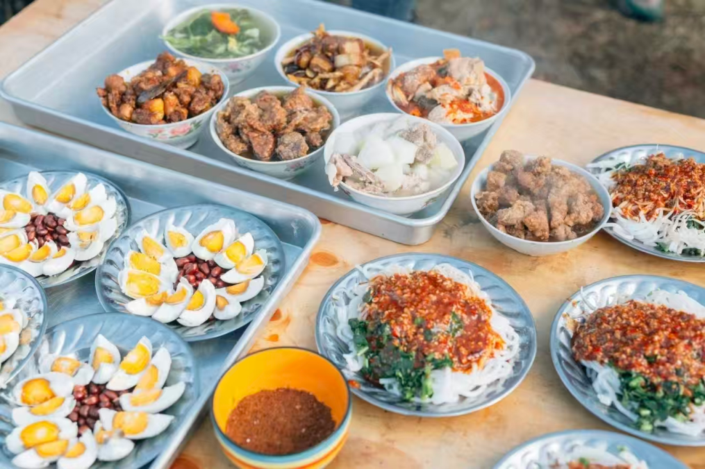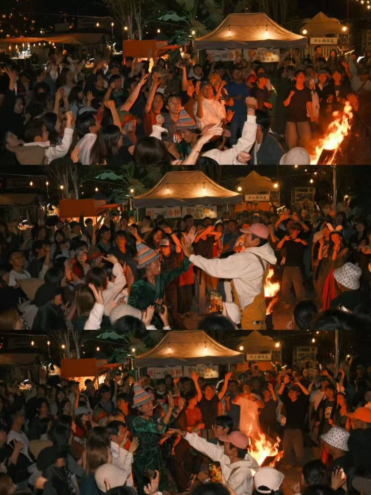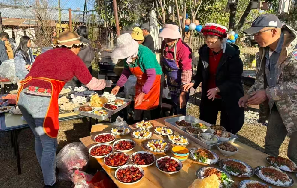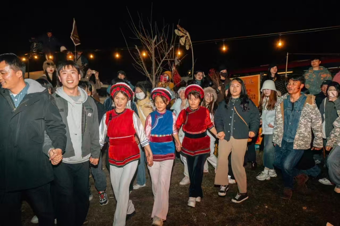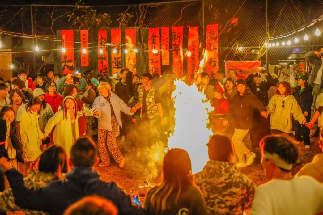 △“暖暖新年”的流水席和夜晚的篝火晚会。(图片由受访者提供)