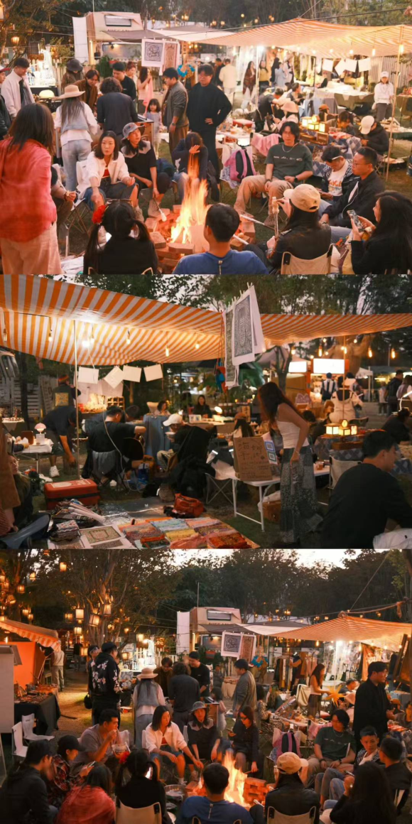“这里原本是一个荒废了8年的农家乐,经过两年的改建,我们一步步把它建成了心目中的青年社区。”郭剑飞说。2024年,占地8000平方米的暖暖青年社区正式营业,一片1000平方米的湖水点缀其间,为整个空间增添了灵动气息。如今,社区内设有暖暖汽车青旅、塔佩斯餐厅、社区食堂、“夜风颂”酒吧,每周举办的市集可容纳100多个摊位。