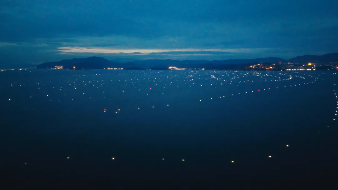 夜晚,洱海上亮起一盏盏渔灯,如同星河入梦。