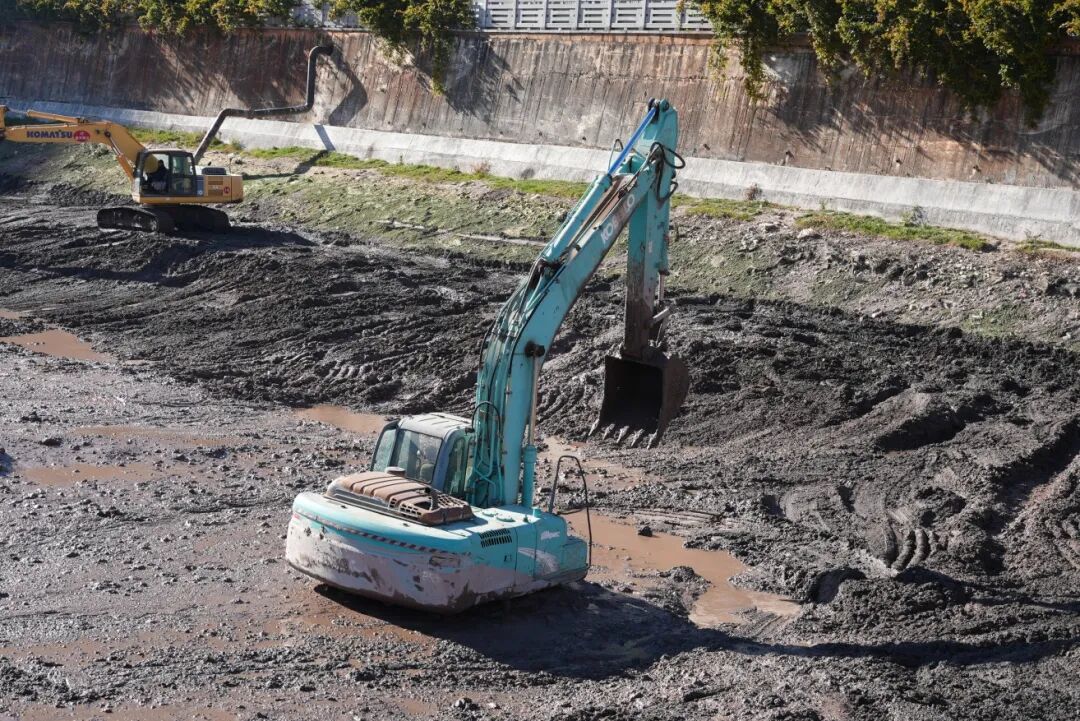 “目前我们投入了7台挖掘机和17辆渣土运输车,实行‘白加黑’轮班作业模式,计划日均清淤量保持在2000至3000立方米。”李永标介绍。所有清理出的淤泥,都将由具备专业资质的单位进行环保化处置。