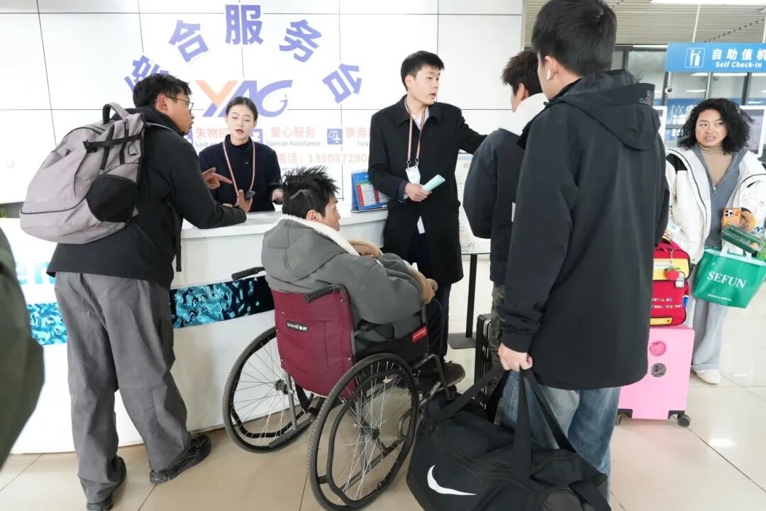 机场设有醒目标识的“爱心通道”,符合条件的旅客可享受从值机、安检、候机至登机的“一对一”全程陪护服务。地面服务部工作人员李娟在协助一位乘坐轮椅的旅客后表示:“我们不只是引导路线,更注重全程的陪同,让每位旅客都能安心、顺畅出行。”