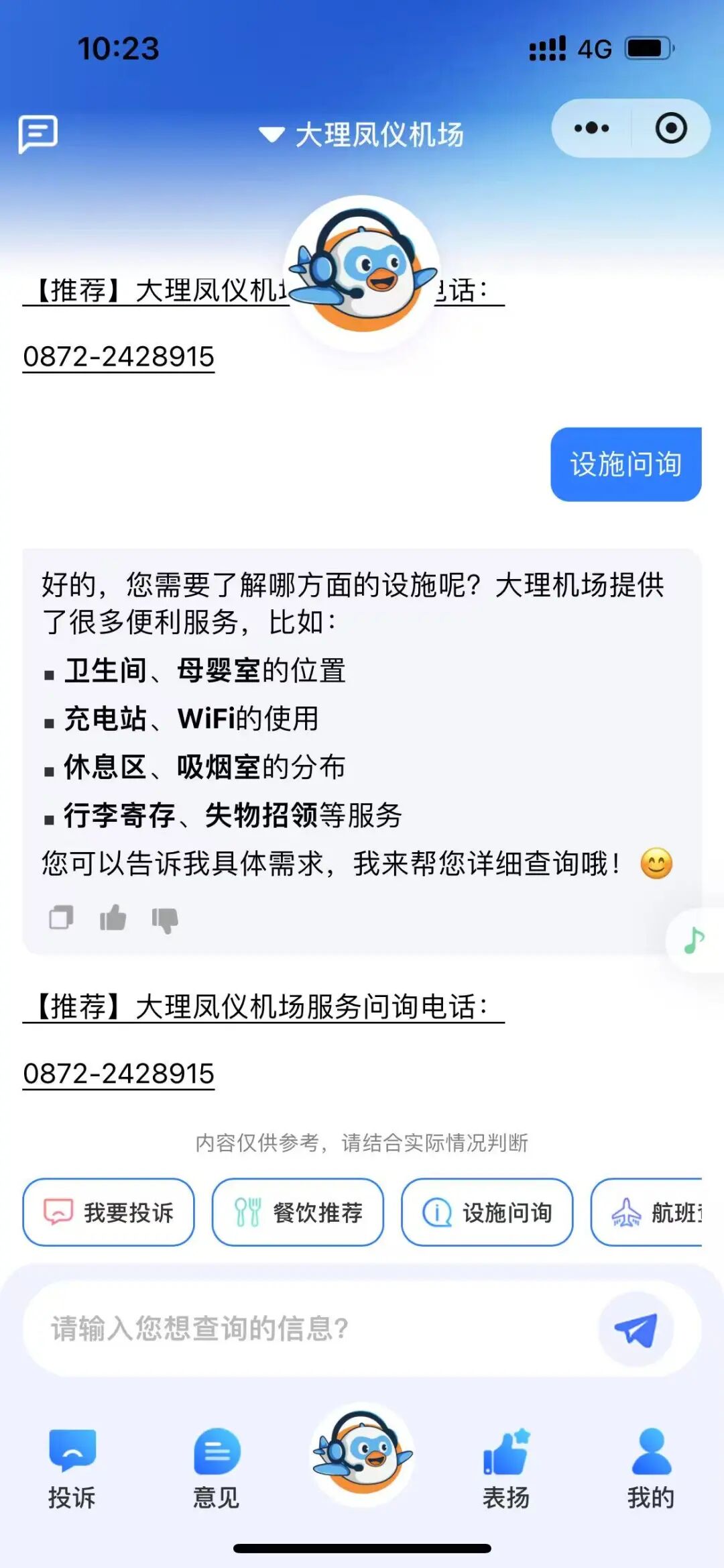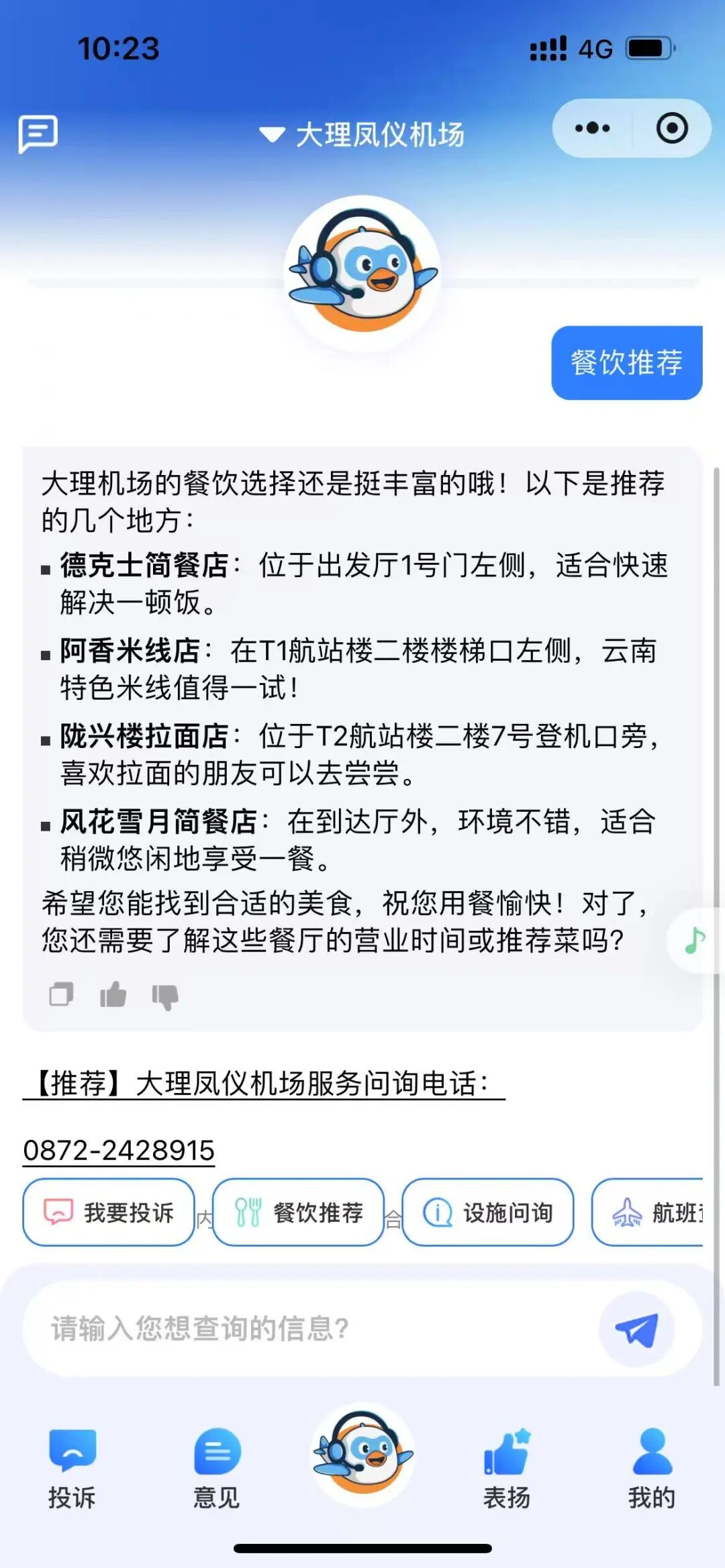 与此同时,为迎接春节出行高峰,航站楼将进行整体节日氛围布置,并开展特色服务活动。机场还将联合相关文旅单位,在到达大厅等重点区域设置旅游咨询便民服务点。机场副总经理杨磊表示:“我们希望通过这个服务点,为旅客提供及时、准确的交通、景点、住宿等出行指引和实用信息,让他们一下飞机就能获得清晰的旅游导向,感受到大理的热情与周到服务,实现航空与旅游体验的无缝衔接。”