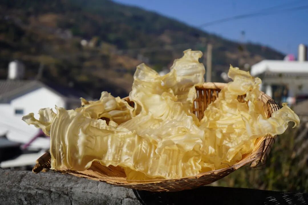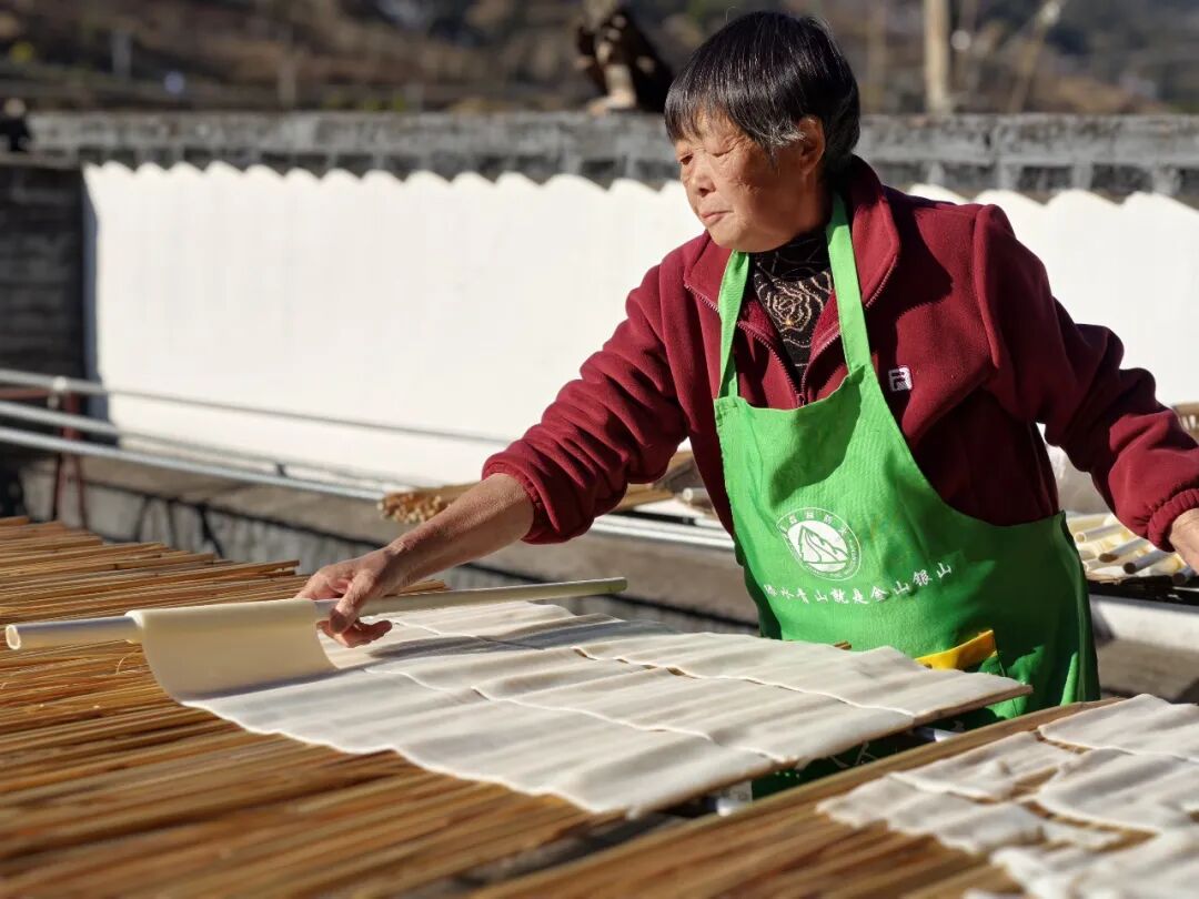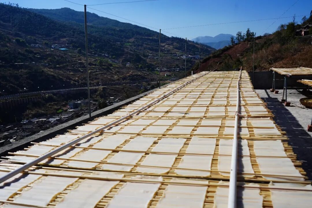 这份传统手艺不仅让群众增加了收入,也逐渐成为当地重要产业支撑。随着市场需求不断增长,和平村成立了干栏专业合作社,推出礼盒装,以订单式销售拓宽销路,让这张“金色粉皮”走出云龙,远销下关、保山、昆明等地,深受消费者青睐,进一步打响了品牌知名度。