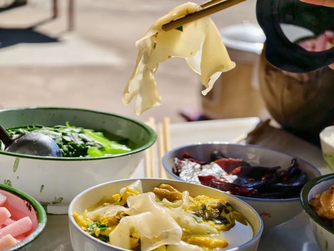 这看似朴实的干栏,藏着百变的吃法。煮进杂锅菜里,吸饱汤汁,软糯鲜香;放入鸡蛋酸菜豆米煮成汤,酸鲜开胃;热油里炸至金黄,滋滋作响,满屋飘香;拌进热油粉里,清爽适口,家常又美味。也正是这份接地气的“百搭”属性,让它成为了云龙人餐桌上一年四季都少不了的美味。