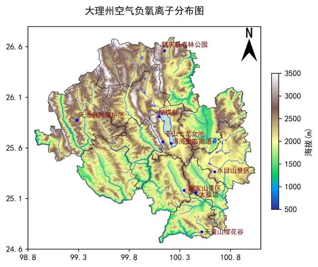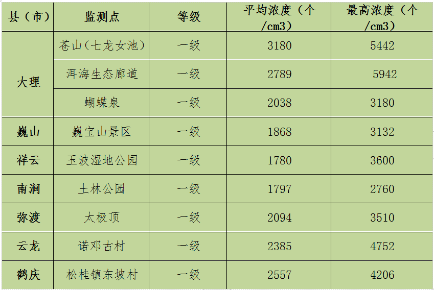 大理州空气负(氧)离子浓度