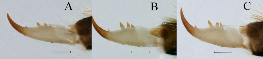 据悉,雨水带肋蜉和夏至带肋蜉这两个新种分别在苍山西坡、东坡被发现。雨水带肋蜉的爪上为4个齿,夏至带肋蜉的爪上有3个齿,这是两个新种区别于其它同类的重要形态特征。目前,夏至带肋蜉正在参加中国“2025年度十大昆虫新物种”的竞选。