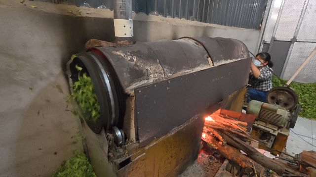 傍晚时分,茶厂加工车间里一派热火朝天的忙碌景象。新鲜采摘的茶叶摊晾在竹匾上,散发出阵阵清香。制茶师傅们坚守着传承多年的传统柴火工艺——杀青、揉捻、干燥,每一道工序都全神贯注。柴火灶膛里火焰跳跃,铁锅温度恰到好处,师傅双手不停翻抖,鲜叶在高温下迅速失水,青草气褪去,茶香渐次释放。