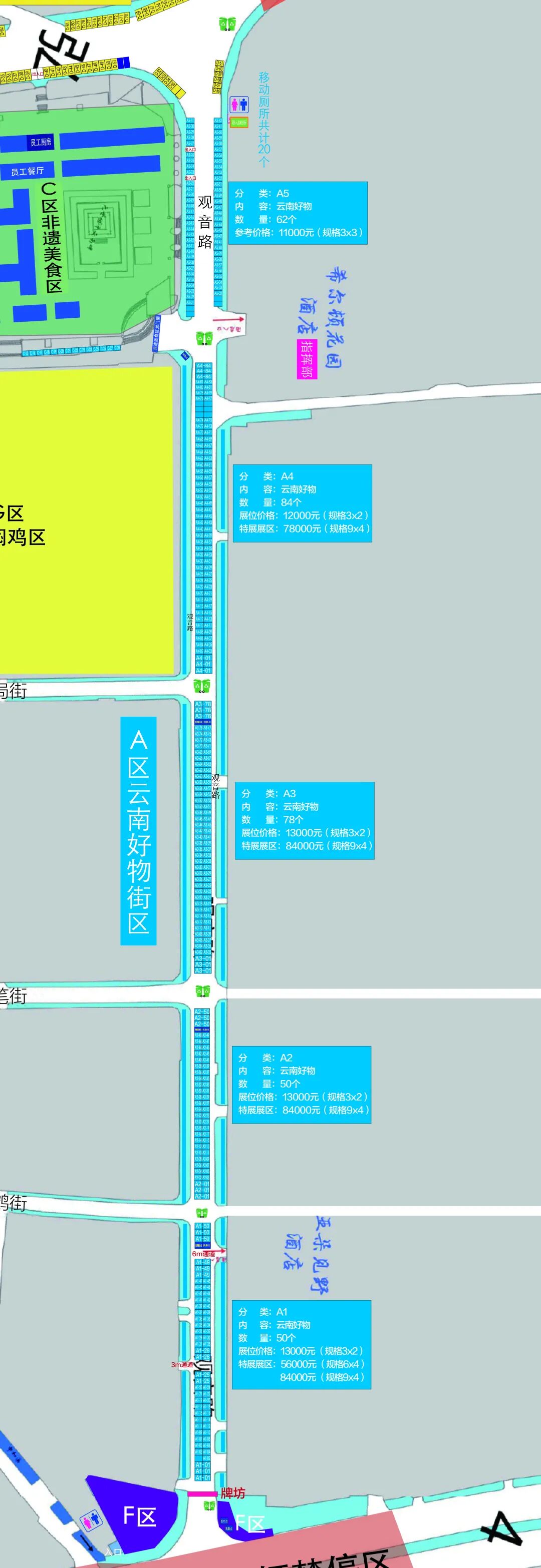一、招展范围:2026年大理“三月街”民族节展位招展区域为A1-A5,B1-B2,C,D,约662个展位,具体如下: