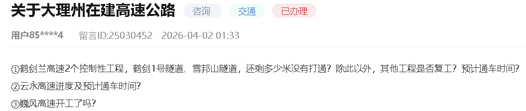 咨询大理州在建高速公路的相关工程进度