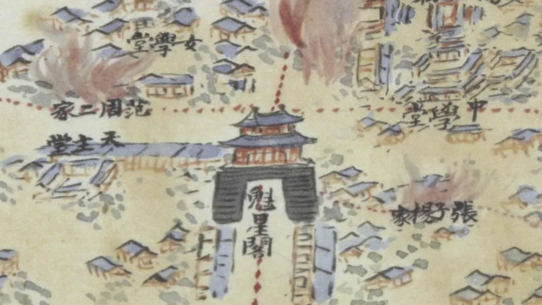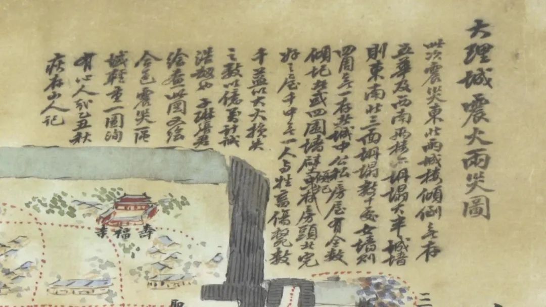 整幅图对大理城的布局,受灾点位做了详细描绘,再加上是彩色描绘,将地震发生后城内的情况客观准确地做了记载。