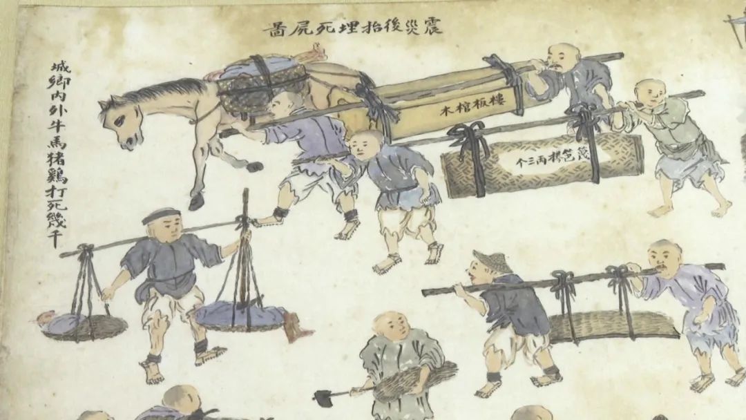 陶晓东 摄该图主要描绘了地震及震后大理城引发火灾的惨烈画面。此次地震当时共造成3736人死亡,7260人不同程度受伤,受灾39731户,倒房75963间,倒墙96629堵,牲畜死亡10113头。