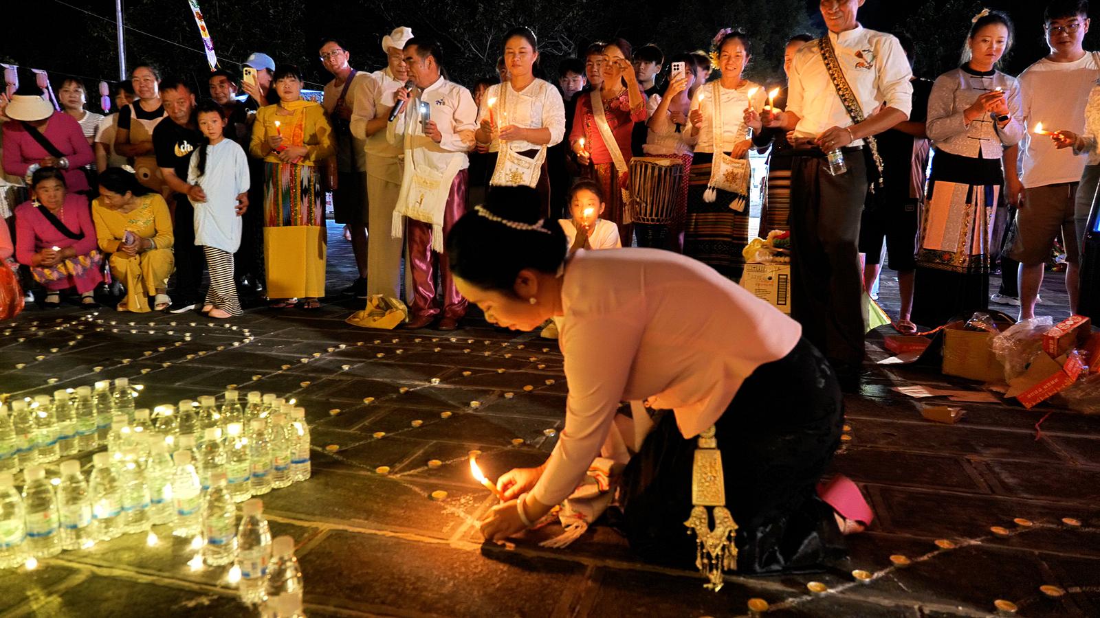 各族群众身着节日的盛装,携带鲜花,背上织锦做成的筒帕,装上米、蜡烛、水果、线香、饼干等前往参加。庆典现场,热闹非凡,大家敲起芒锣、象脚鼓,还有嘎伴光和傣拳、傣棍等表演。当夜幕降临,标杆迎风竖起,人们许下来年顺遂的期盼;紧接着,一盏盏花灯次第点亮,映得人们脸上满是笑意;而后,一盏盏许愿灯承载着心愿随河漂流,将对家人安康、五谷丰登的祝福悄悄融进这温柔的夜色,各民族同胞们在欢声笑语中共同体验傣族文化的独特魅力。
