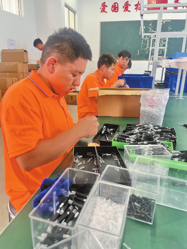 2025年8月,车间党支部正式成立。4名党员中有3名同志身有残疾,他们既是生产“带头人”,也是员工“贴心人”。拥有13年党龄的马晓丽是最早掌握笔组装流程的员工,她说:“我们更懂残疾朋友的难处,也更想帮大家一起站起来。”