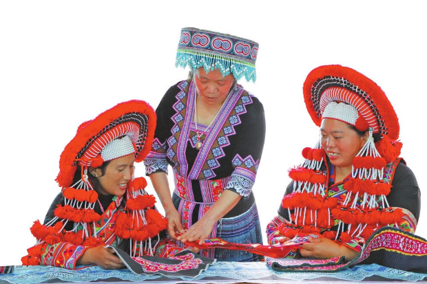 如今,工坊已培育出一支集苗、彝、壮、瑶等少数民族妇女于一体的63人绣娘队伍,实现了民族技艺的代际传承和群众增收致富的双赢。