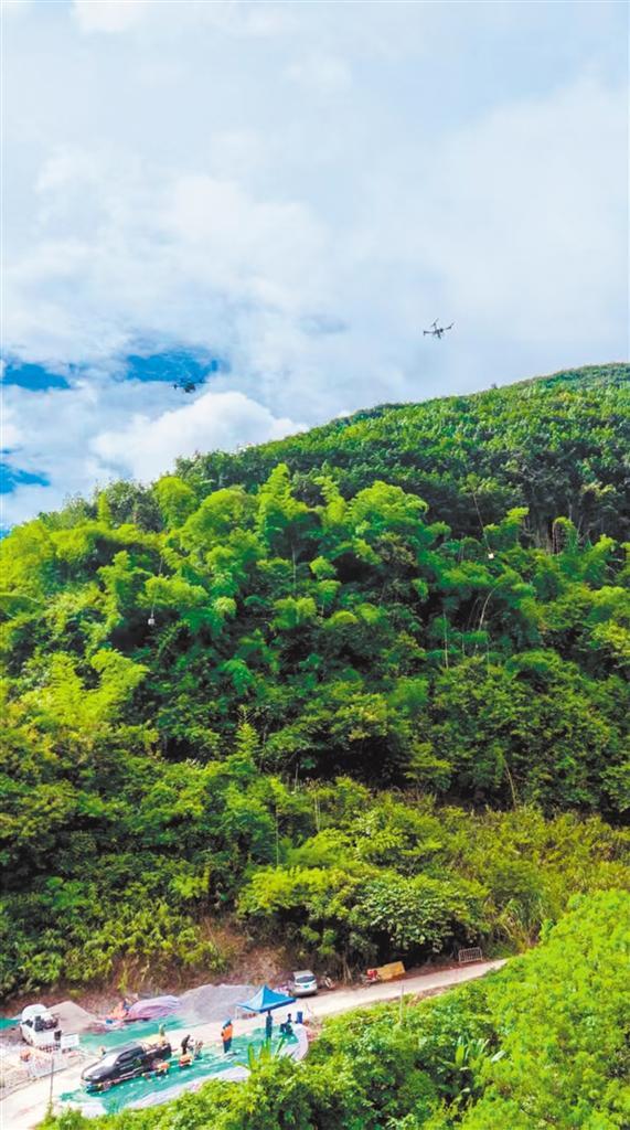 8月14日,南方电网云南电网公司工作人员在中老500千伏联网工程开展无人机集群作业运输材料。该工程是南方区域首个500千伏电压等级跨境联网工程,投产后中老双向电力互济能力预计达150万千瓦。张 强摄(中经视觉)
