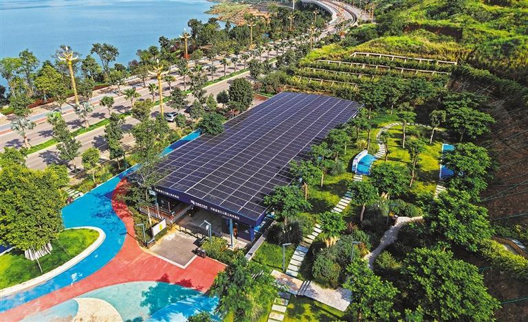 8月7日,昭通市巧家县邱家屿零碳房车营地园区,南方电网云南昭通巧家供电局打造了光、储、充一体化系统,为电动汽车提供便捷充电。吴学迁摄(中经视觉)