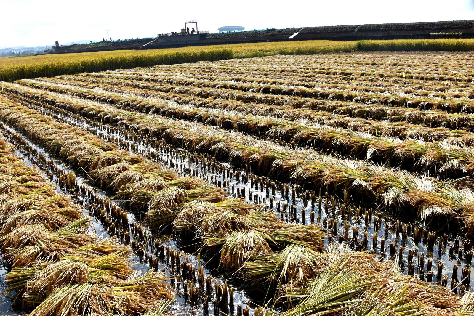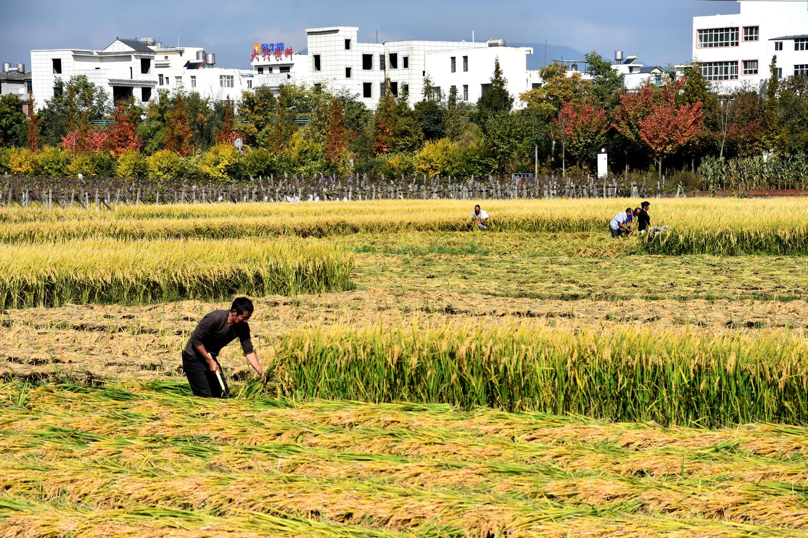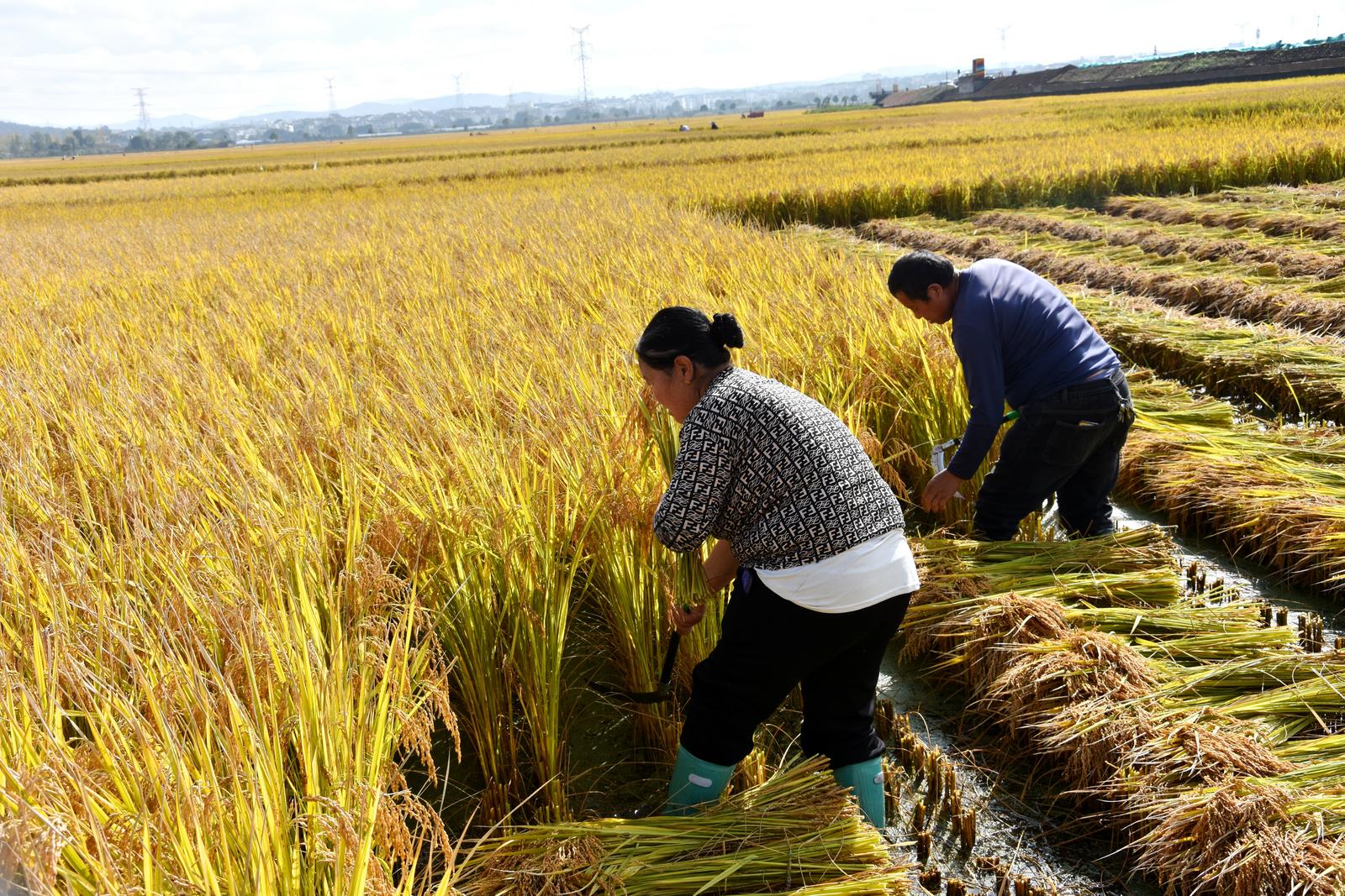 11月4日上午,久雨初晴的昭阳区碧空如洗。走进凤凰街道黑泥地社区水稻种植基地,阵阵稻香扑鼻而来,一望无际的田地里黄绿交织,整齐茂密的稻秆缀满饱满的谷穗,尽显丰收盛景。“千亩稻浪舞晴空,丰收时节稻穗香”,稻农们穿梭田间挥刀开镰,挥汗劳作,脸上洋溢着丰收的喜悦。