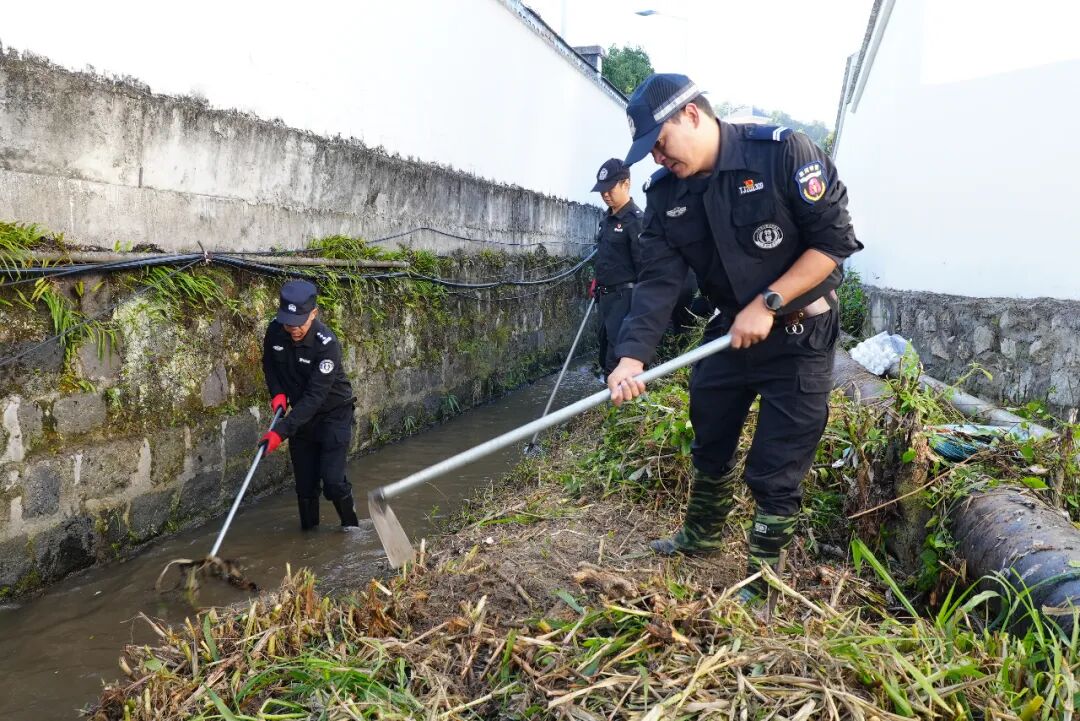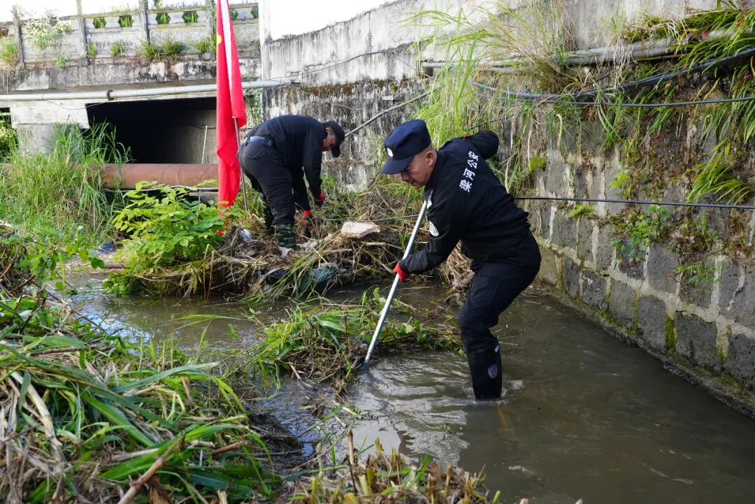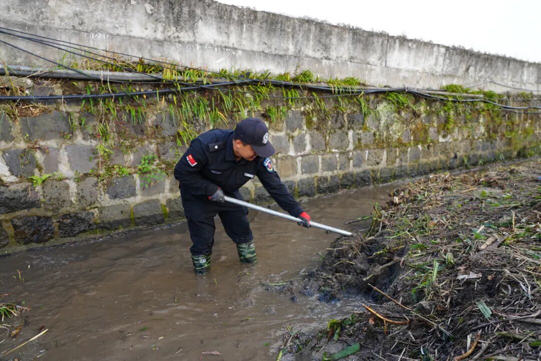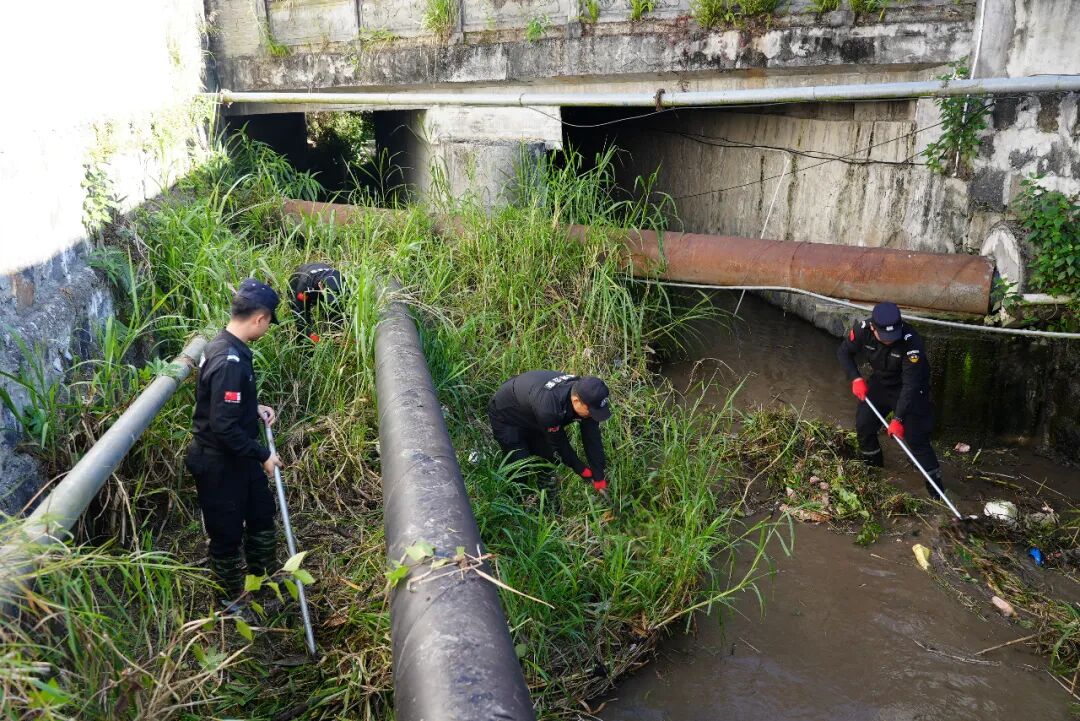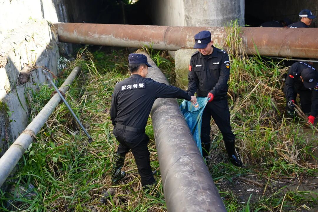 行动现场,参与清理的警员们手持垃圾袋、锄头、钉耙、镰刀等工具,化身河道清洁先锋队,分工协作、默契配合。有的负责打捞清除水面及周围的生活垃圾、塑料垃圾等污染性漂浮物;有的负责铲除河床、渠道内腐臭淤泥、残败水生植物;还有的负责清理岸边杂草,并将垃圾进行集中处理。面对河道内的顽固淤泥与隐蔽垃圾,大家充分发扬不怕脏、不怕苦、不怕累的战斗精神和优良作风,经过近两小时的辛勤劳作,河域沿岸及周边环境得到显著改善,河段面貌焕然一新。