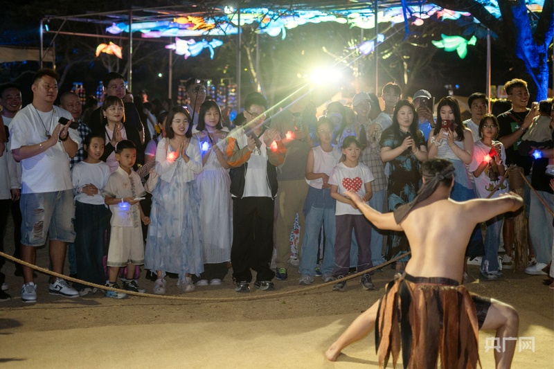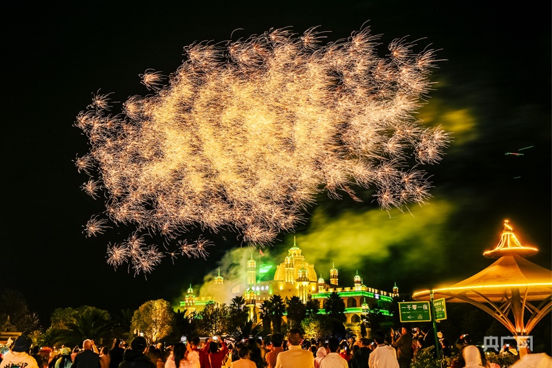 夜幕下,游客们观赏烟火表演(央广网记者 赵贝贝 摄)