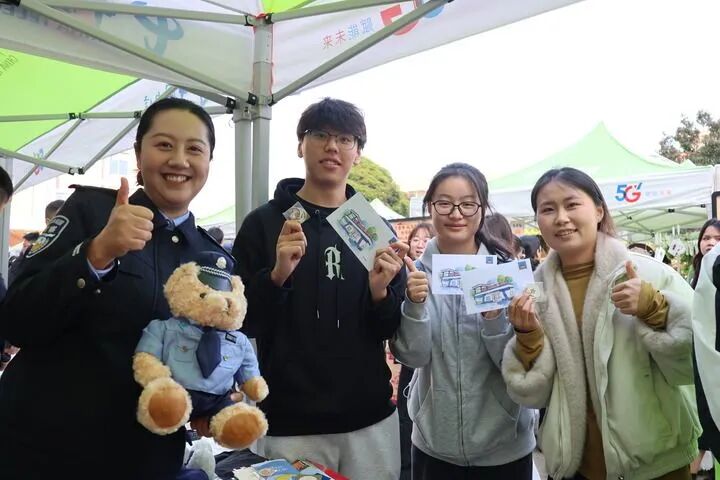 活动刚开始,“瑞丽义警”展位就被师生围得水泄不通。展台上,精美的钥匙扣、记录边境风光的明信片和可爱的警察玩偶吸引了年轻人的目光。但真正让他们驻足的,是民警讲述的那些带着烟火气的鲜活故事。