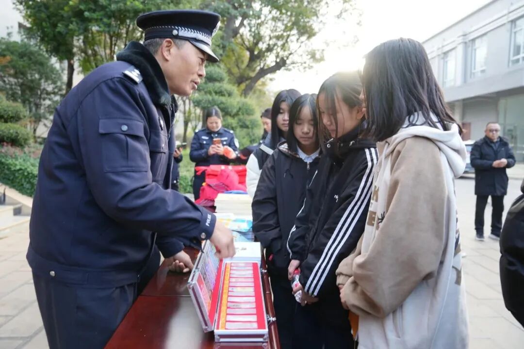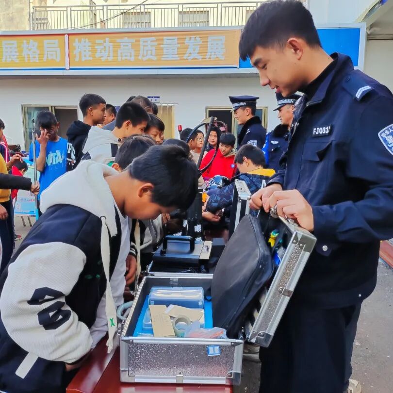 活动中,民警向师生展示、讲解警用装备、器材、救生工具等的使用方法和注意事项,让学生近距离试用防爆头盔、防刺服、手铐、甩棍等警用物品;组织观看禁毒、道路交通宣传展板,并带领师生参观值班室、办案区等场所,使参观人员真是感受公安机关日常执法服务工作情况。同时,结合辖区实际,讲解校园暴力、打架斗殴、毒品犯罪、电信诈骗、道路交通违法等危害,教育学生从小树立遵纪守法观念,提高自我保护意识,敢于对违法犯罪说不。