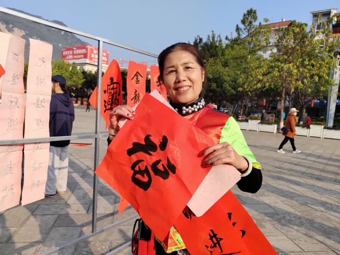 “请老师写了一副‘平安如意人多福 天地和顺家添财’的对联,希望龙年里家人都健健康康,日子红红火火。”居民姚兰仙小心拿着墨迹未干的春联对记者说。