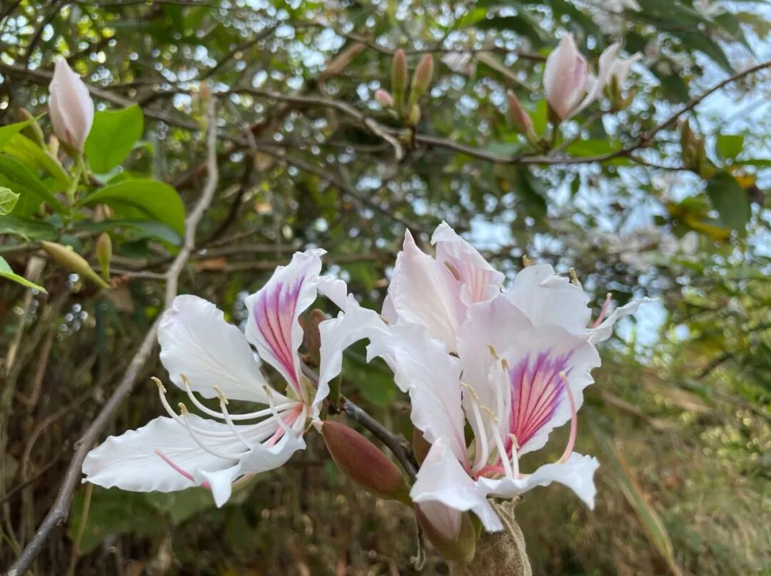 春到山野,万物竞发。又到了一年一度吃花的季节,普义乡的山林间、道路旁多了些白色点缀,远看一团团一簇簇,近看每朵白花有五片花瓣,其中的一片上有些许紫红色,清新素雅,这就是老白花。
