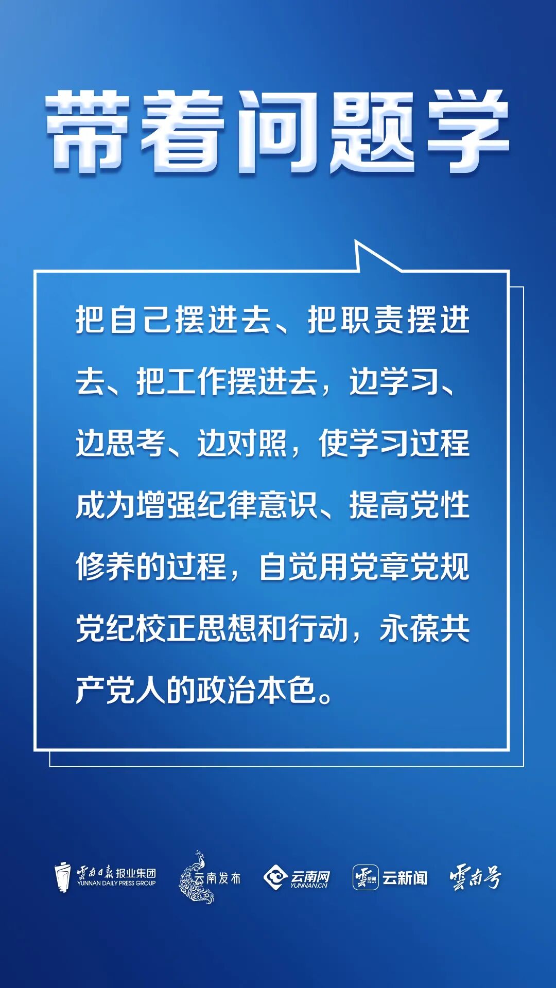 4月24日,省领导干部党纪学习教育读书班开班。读书班以集中自学、专题辅导、集中研讨相结合的形式分阶段开展。集中自学就是组织所有在昆省级党员领导干部坐下来、静下心,深入学习习近平总书记关于党纪学习教育的重要讲话和重要指示精神,一条一条扎扎实实学习新修订的《中国共产党纪律处分条例》。