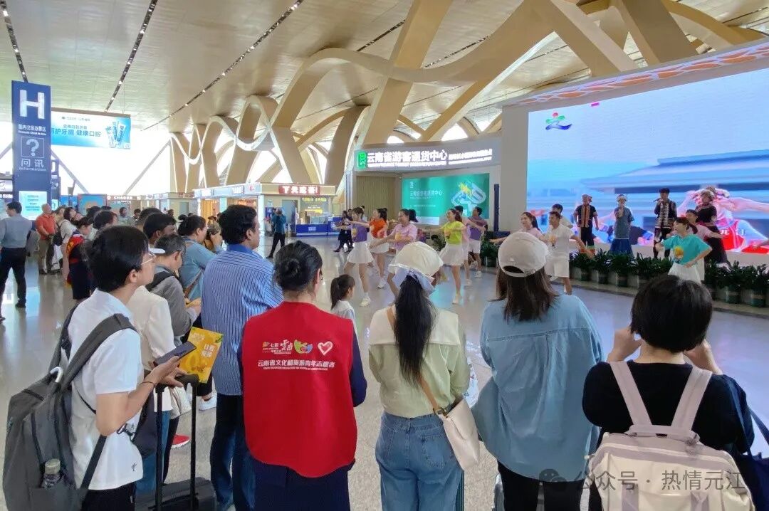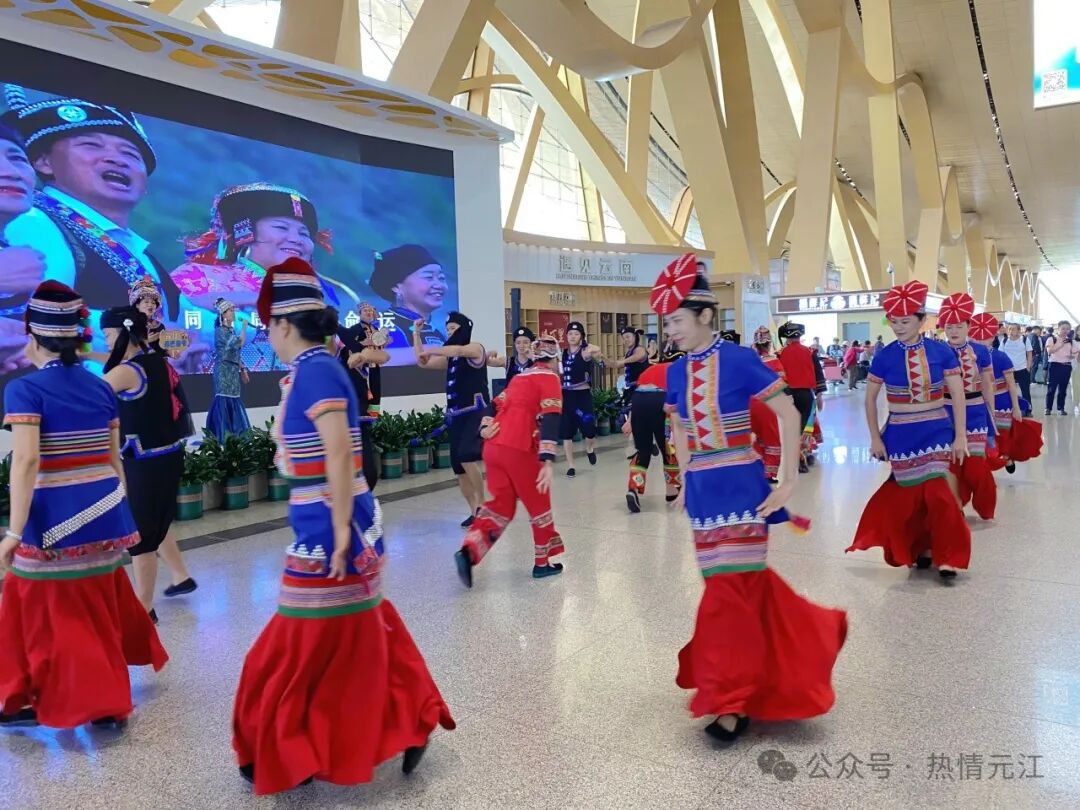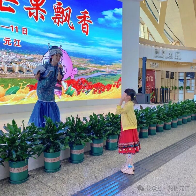活动现场,随着优美轻快的旋律,元江县群众文化工作队和元江本土歌手组合哈莫兄弟身穿民族盛装,精彩呈现了《芒果Mango》《元江儿女一家亲》《快乐哈尼》等民族特色浓郁的节目,让旅客更好地感受热情元江的文化魅力气息,吸引了众多旅客驻足欣赏、拍照记录。