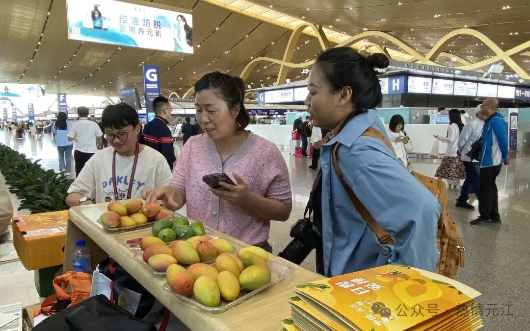 活动现场,还通过发放宣传资料等形式推介元江美丽的自然风光、独特的民族风情、历史悠久的古迹等特色旅游资源,同时推荐元江旅游打卡点,吸引旅客到元江参加“芒果节”。