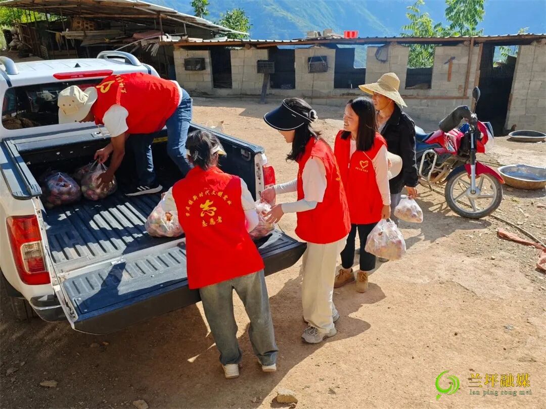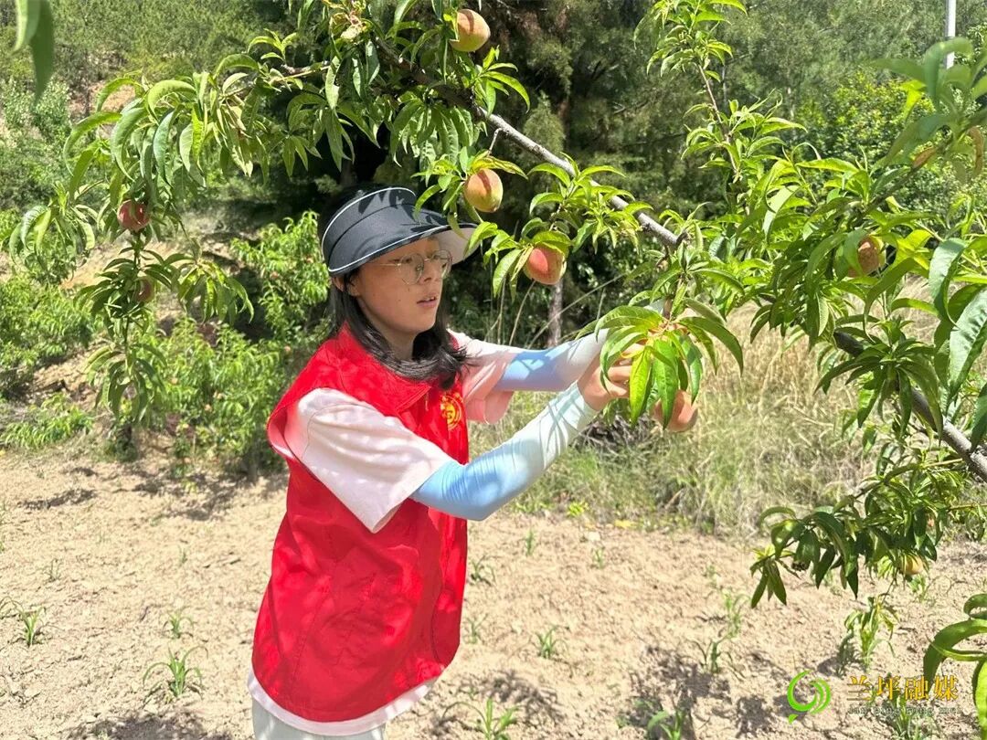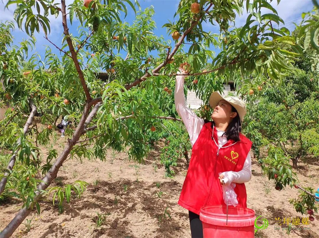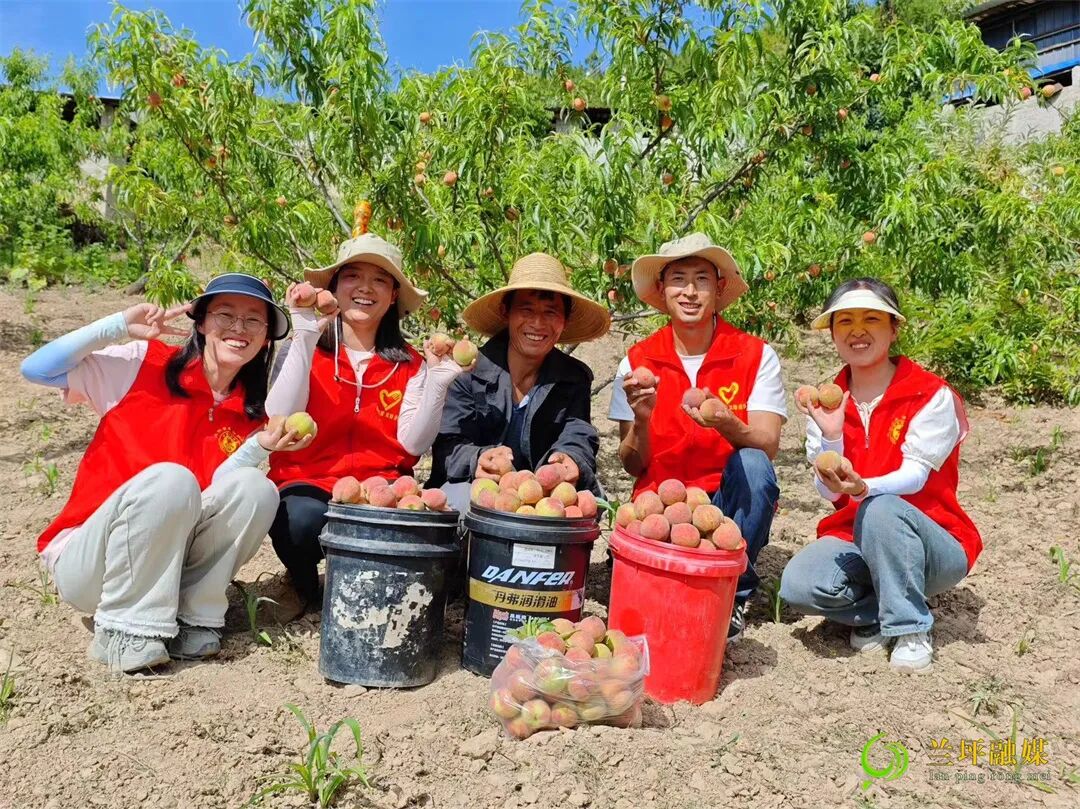 近日,兰坪县营盘镇新时代文明实践所组织志愿者到连城村委会上连城二组和俊荣家的桃园里开展以“助力血桃丰收”为主题的志愿服务活动。