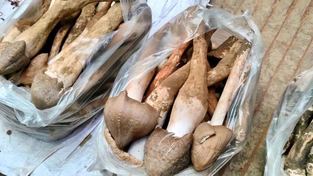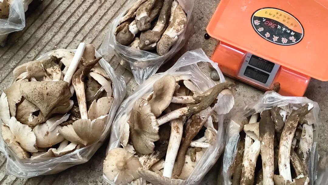 县城的鸡枞,不仅来自周边大山,还来自各个乡镇,全部汇集到一起,街上弥漫着泥土与山林相融的菌香味,吸引着人们前往。时间作为鸡枞菌最大的劲敌,伞盖一开,分钟之间,菌香就会散开,风味也随之锐减,因此,未开伞与开伞的鸡枞菌的差别在价格上体现的淋漓尽致。所以买鸡枞的人争分夺秒,往往卖菌的人刚放下背篓,来赶集的人们已蜂拥而上将人团团围住。“鸡枞多少钱一斤?”“这个没开的80,开的这个70”“开的65卖不卖?我全部要了”你来我往的议价之间,鸡枞已成交,有时看到心仪的鸡枞菌,稍有犹豫,便被其他围观的人买走。很多居民奔着价格稍廉的开伞鸡枞去,往往一买就是几袋,用炸鸡枞油的方法让离家带不走的季节限定,把一腔乡愁和鲜味牢牢锁进一碗鸡枞油里。