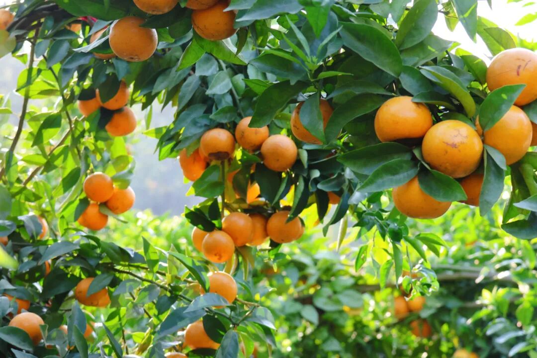 走进柑橘园,放眼望去,一棵棵橘树上挂满了沉甸甸的果实,在阳光的照耀下,散发着果实成熟的香甜,宛如一盏盏小巧玲珑的金色灯笼。