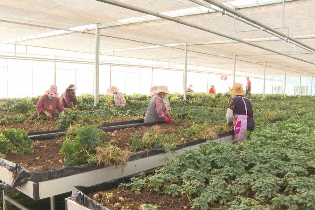 在宁蒗县佳禾种子有限公司,工人们正在采收马铃薯原原种。(电视画面 丽江融媒记者 赵丽军 摄)