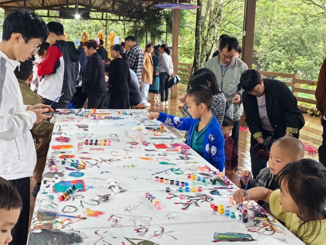 此外,现场还有“我为祖国添色彩”画布彩绘、漆扇、拓印、剪纸等特色文化活动,各式各样的特色烧烤、风味小吃、苗家美食,琳琅满目的农特产品吸引着往来的游客。值得一提的是,这些农特产品都是精选于革来大米、革来酸菜、苗家勺蜜等大水井乡优质土特产,产品都有着精美的民俗特色包装和绿色、生态的优秀品质,能让人既饱了眼福,也饱了口福。