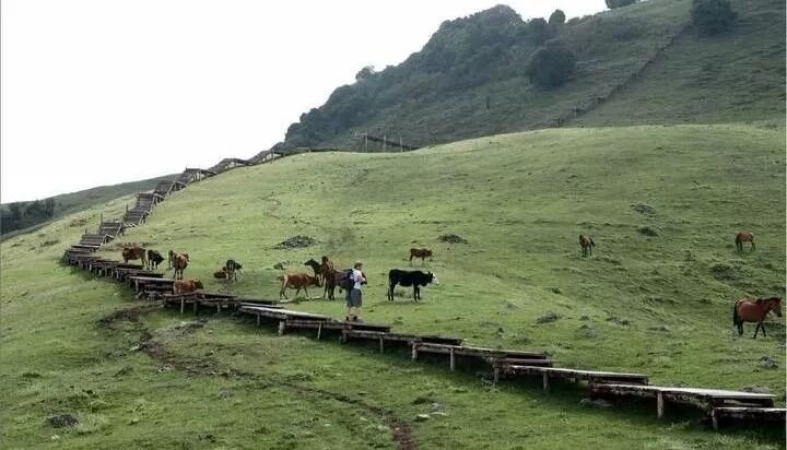“接下来的一段路是平的,但是要穿过海拔1100米的黄家寨,可能会下雨,我们要做好准备。”丈夫一边说一边让我穿好雨衣。果然,行走不到两公里,天空便下起了蒙蒙细雨,初秋的凉意更加浓烈了些。紧接着的是下坡路段,向下望去可以看到群山环抱中的乡政府、街道、村寨……它们总是近在咫尺,却又要翻越几座大山才能到达。一路的美景让人陶醉,我们走走停停,终于在天黑前到了家。
