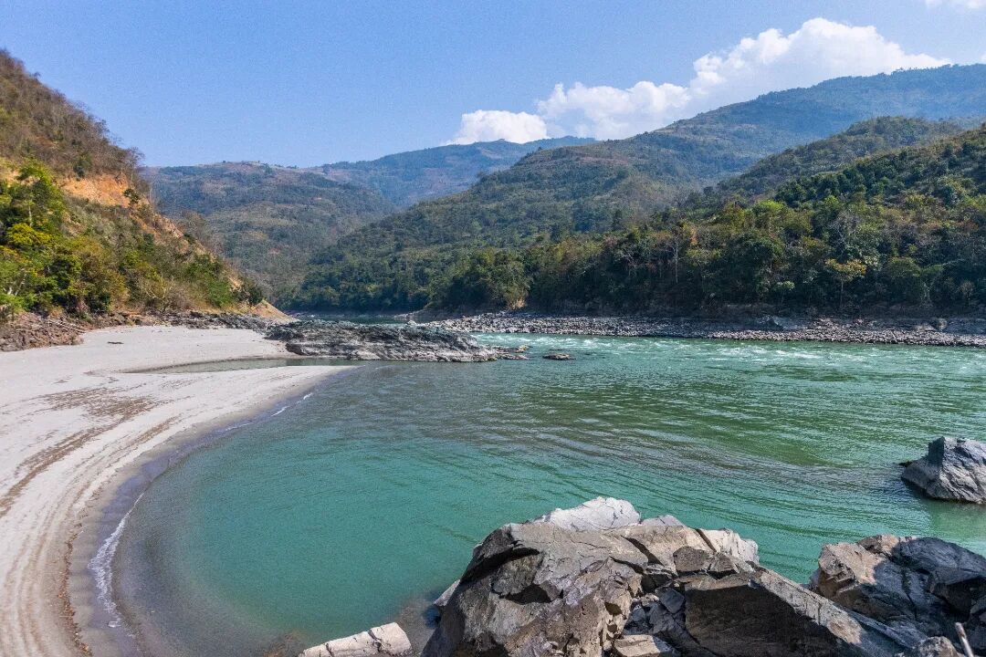 这次,我们来到了老洼响,湍急的江水在山谷间奔腾,沿着山峡蜿蜒而下,波涛滚滚,水流湍急,发出阵阵轰鸣声,低沉而有力,仿佛在诉说着那凄美感人的“马帮爱情故事”。白色的沙滩沙子又细又软,踩在脚下柔软舒适。孩子们脱下鞋子欢快地奔跑着、玩耍着。浅水湾在灿烂的阳光下,显得宁静而又柔美。水流中裸露的青黑色巨石有几百年、上千年的历史,从岸边横七竖八地直插河流中静静地伫立。躺在光滑如镜的石面上晒着日光浴,聆听激浪拍打岸边的声音,那种冲击感让人感到无比舒适和自由。不远处,闲游的人们,在树荫的庇护下烤起了烧烤,香味在空气中弥漫开来,让人心旷神怡。三五个钓鱼爱好者,寻得舒适处,撑起遮阳伞,悠闲自在地垂钓,在这浑然天成的自然画卷之中,感受着大山的慷慨馈赠。