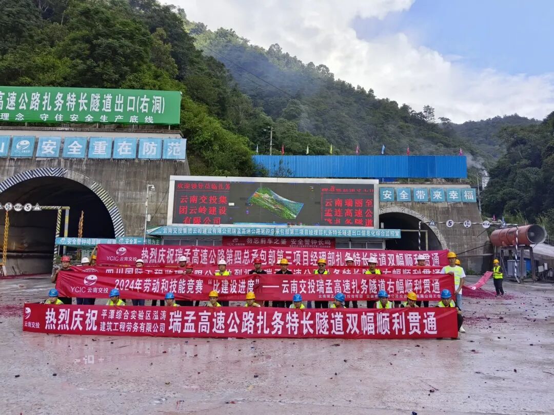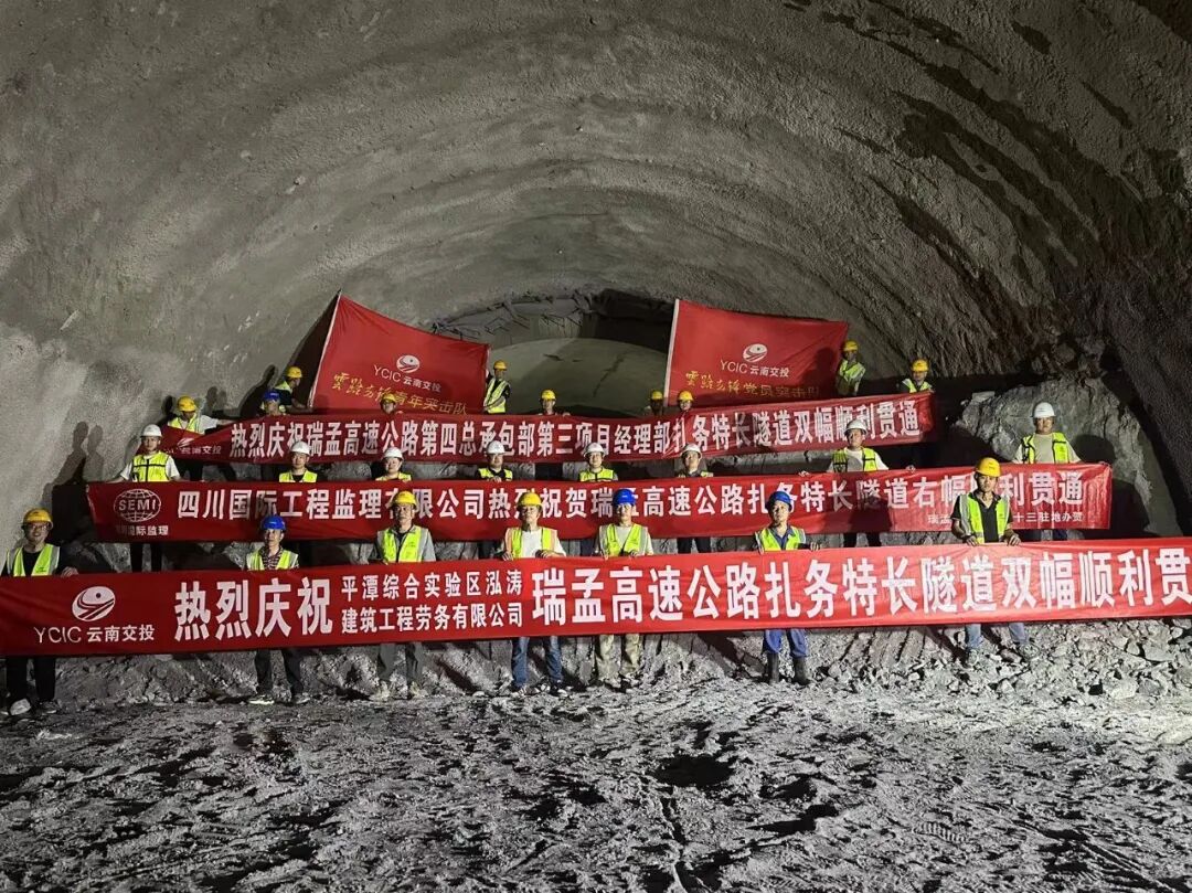 干劲十足奋战金秋,勇毅拼搏献礼国庆。国庆期间,由云岭建设公司瑞孟高速公路第四总承包部承建的扎务特长隧道双幅贯通。