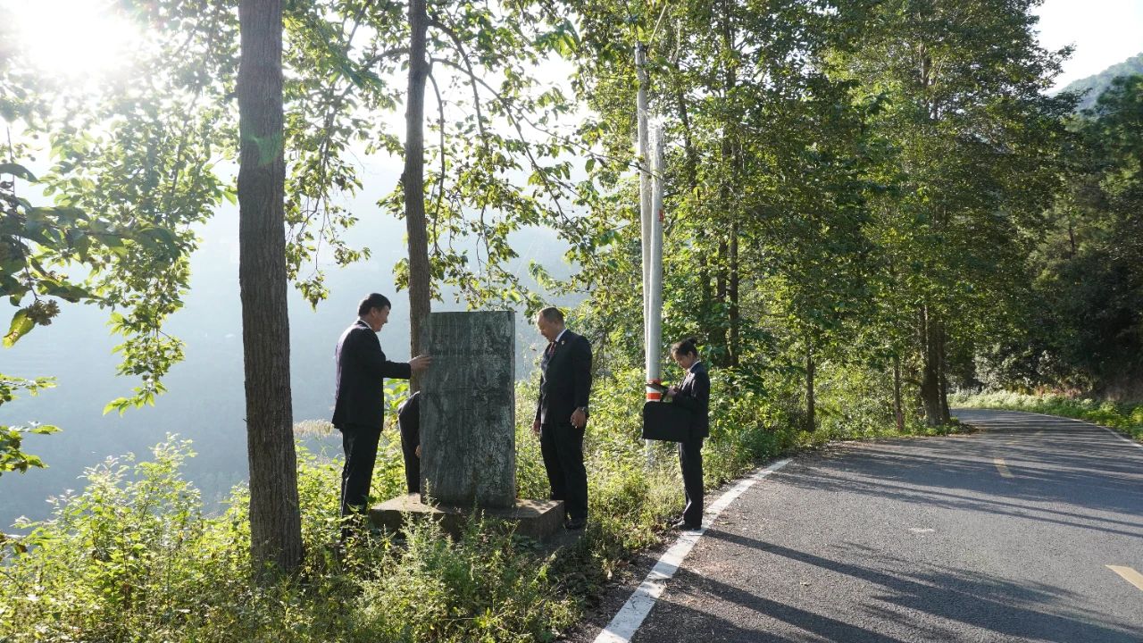 二〇二四年十月,云南省漾濞县检察院检察官对滇缅公路里程碑进行现场勘验。